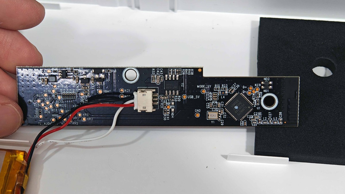泰陵TLSR8273主控,支持1000Hz报告率取下底壳盖板,键盘是预留了可以翻两块4000mAh的电池,出于成本考量标配是丝印为QS606090的4000mAh锂电池,有需更长的续航时间,可自行更换电池到8000mAh,这样续航可以翻倍。