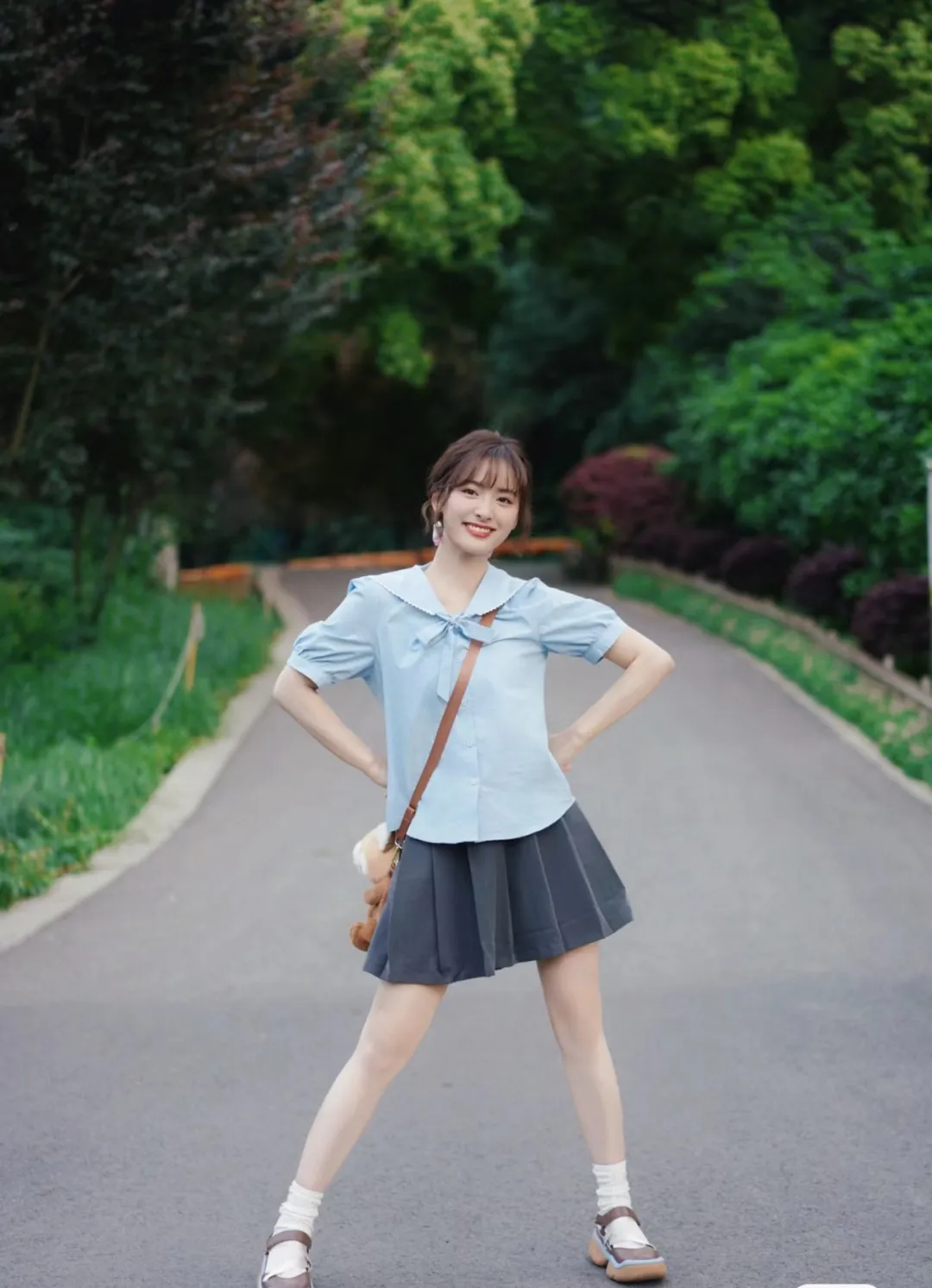 沈月的学院风穿搭,可以说是非常好的借鉴典范了,青春减龄的搭配,普通人上身也很可,选择一件蓝色或白色的基础款衬衫,搭配短裤或百褶裙,营造青春洋溢的学院气息,元气满满~