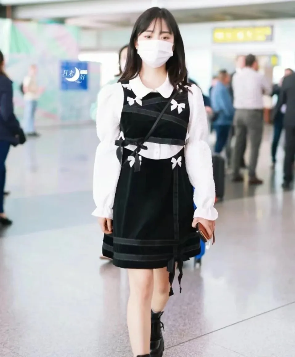 如果说有不需要费力思考的穿搭,那我觉得一定是套装,我们在选择时,要像沈月一样选择不过膝的套装,露出腿部皮肤,拉长身高,在颜色上,尽量选择低饱和的色系,简约清新不易出错,或者像图一一样选择带蝴蝶结的设计,就会更加甜美~