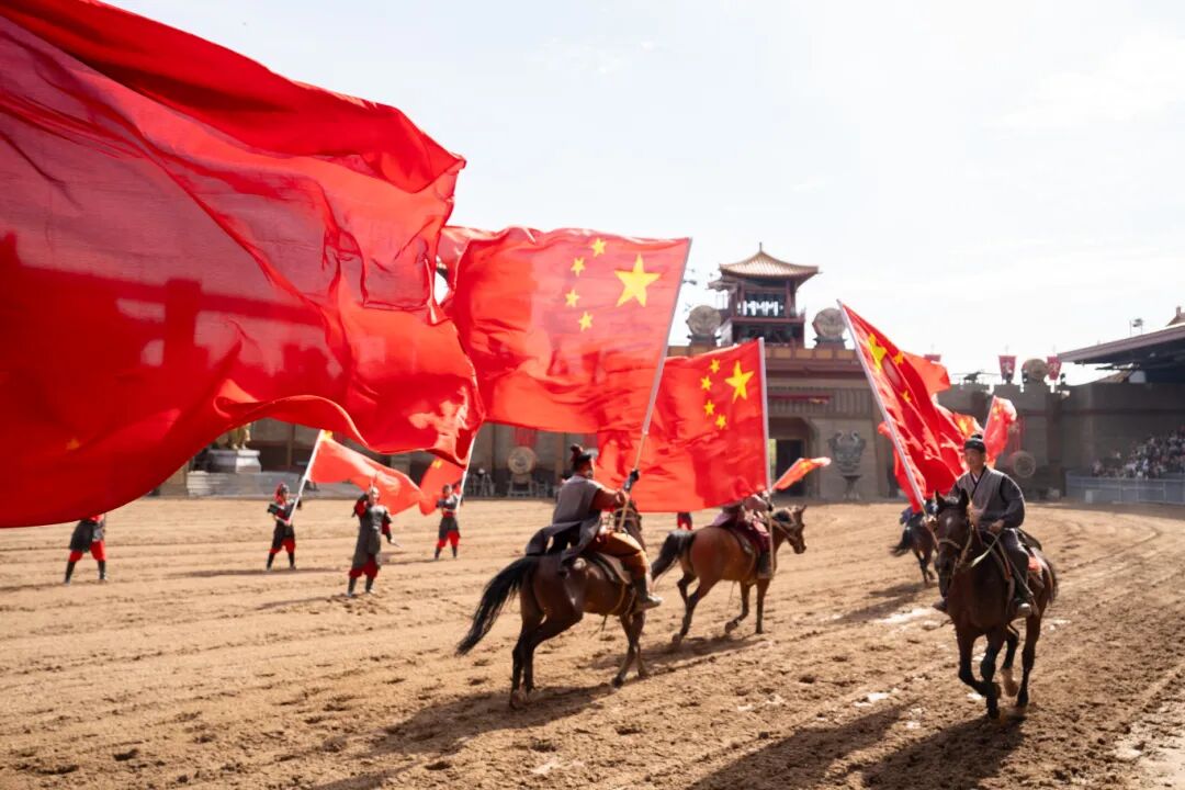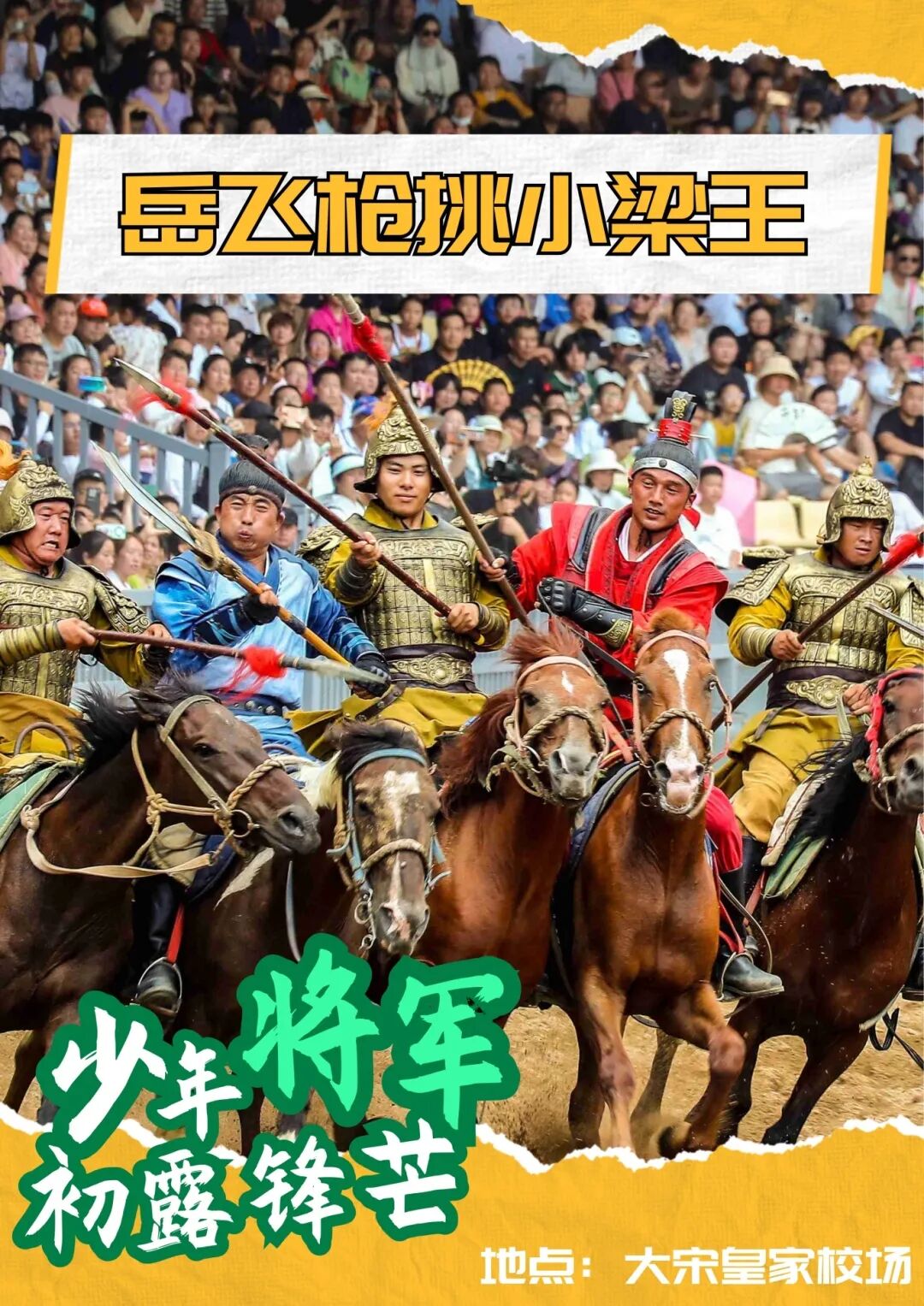 反而飘扬的旗帜让演出更添风华!在景区的经典演出《岳飞枪挑小梁王》