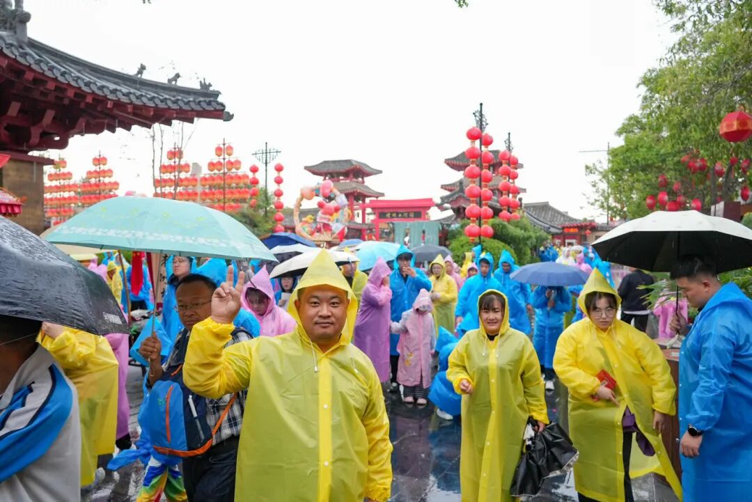景区备足50万件定制雨衣,为入园游客免费发放。