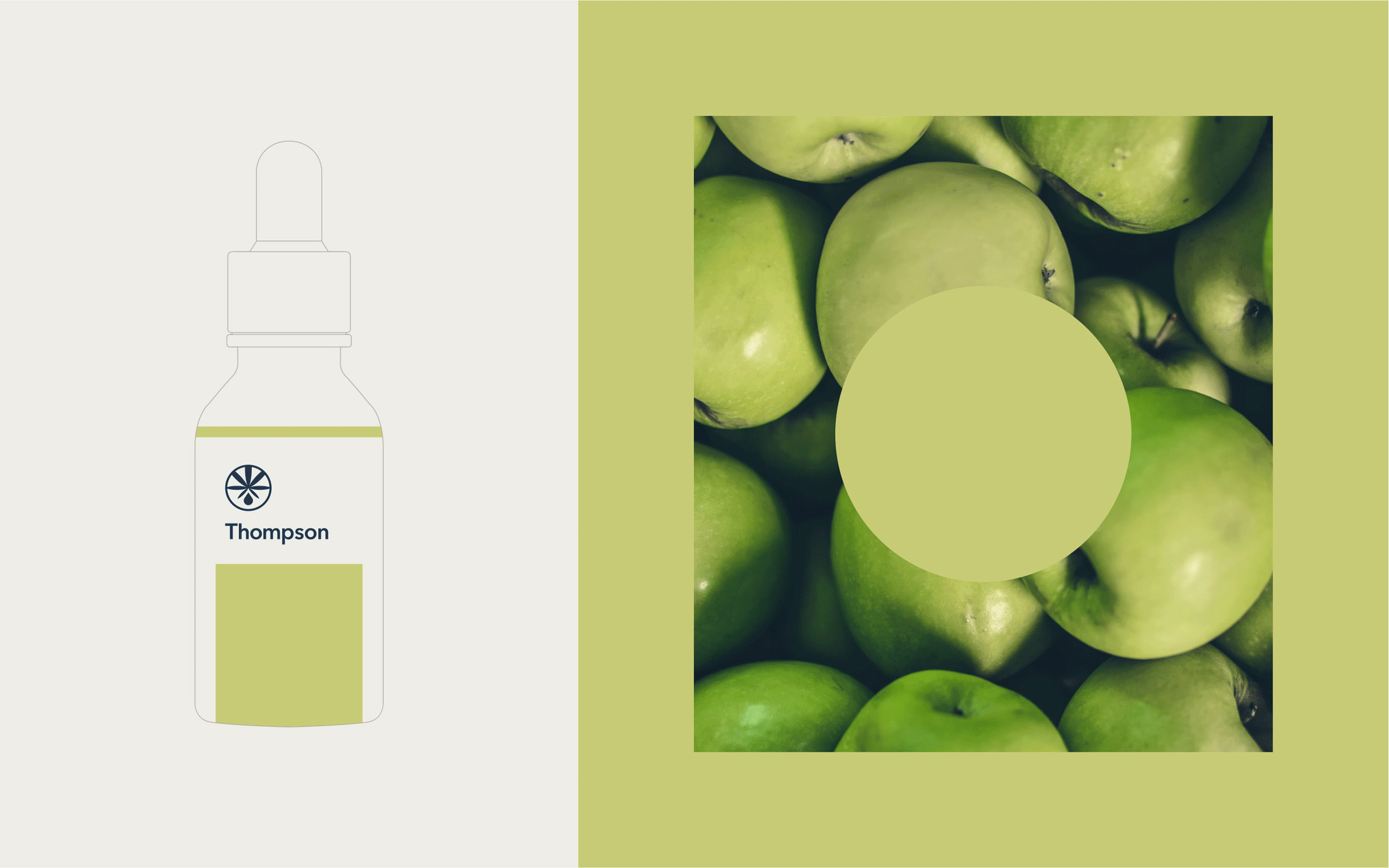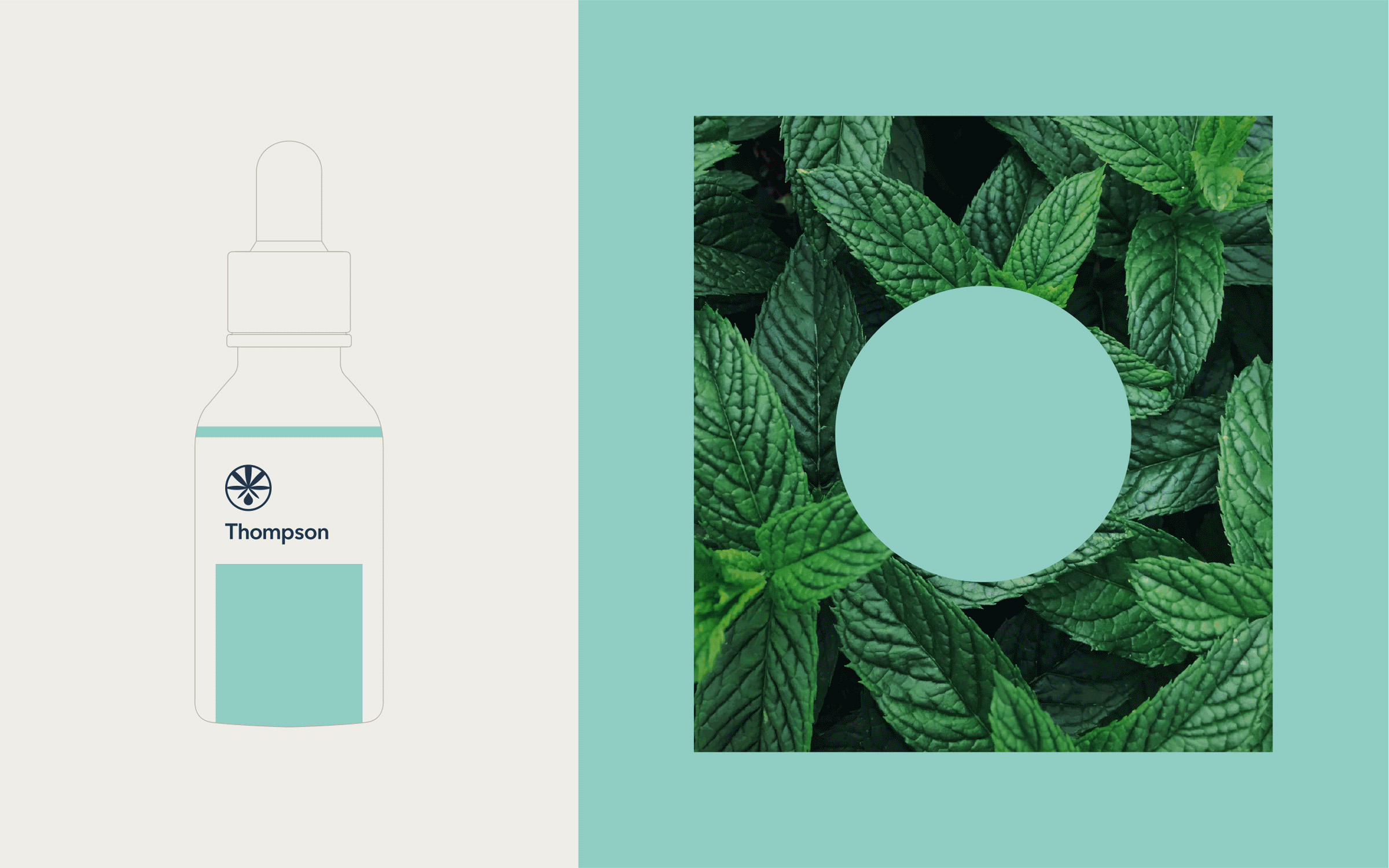 Thompson的包装设计宛如一场自然与简约的奇妙邂逅。其滴管瓶造型简洁流畅,没有一丝多余的繁杂装饰,就像一位低调的绅士,散发着纯粹的气质。瓶身标签上的品牌标识与色块搭配相得益彰,色块颜色选取与天然植物相呼应,仿佛在轻声诉说着产品的自然来源。而右侧搭配的植物背景图,中间的圆形留白宛如神秘的魔法窗口,既突出了自然主题,又给整体设计增添了呼吸感,让人一眼就能感受到产品与自然的紧密联系,仿佛每一滴精华都凝聚着大自然的馈赠。