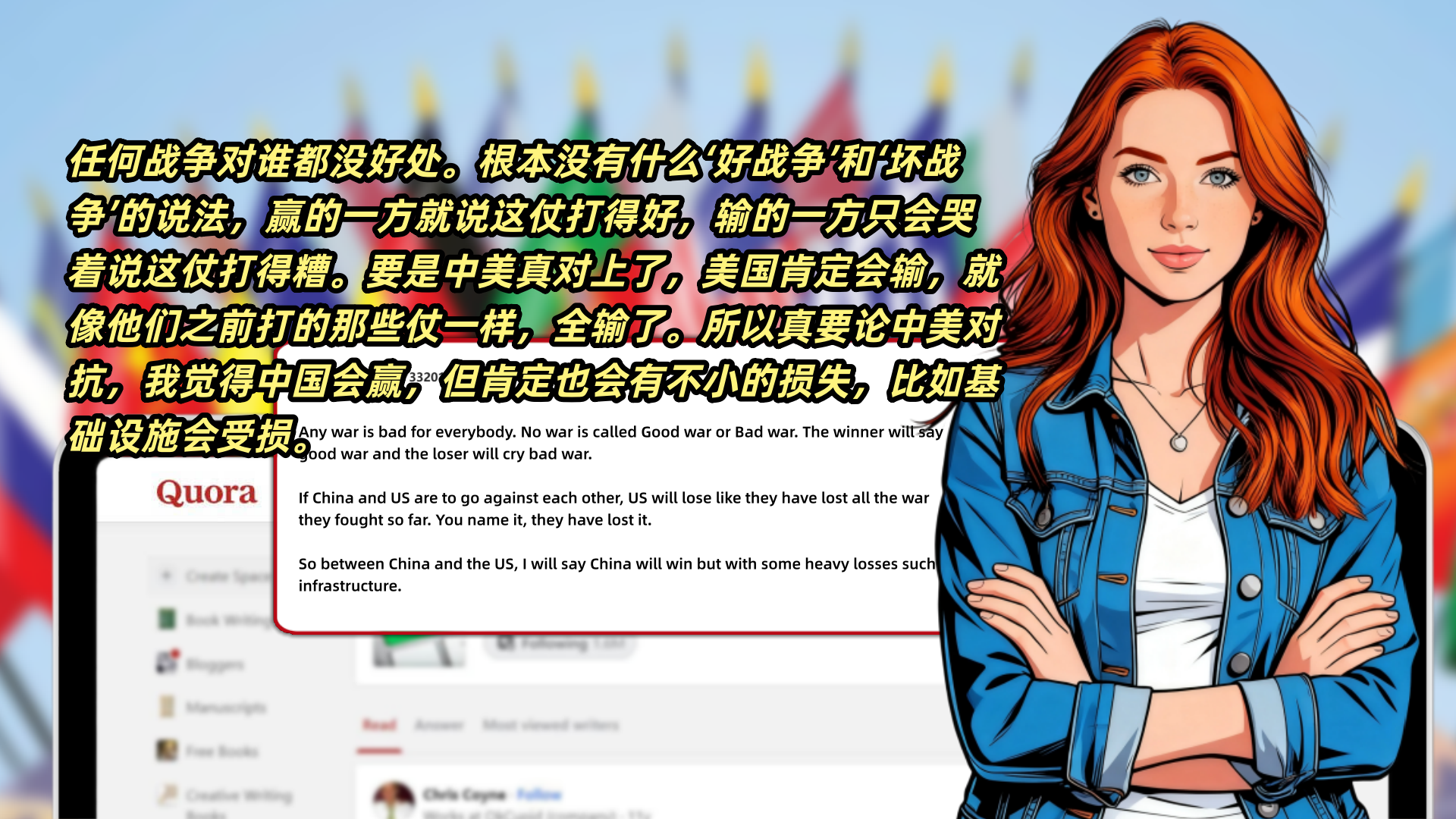最后网友Richard Lu7332018表示:“任何战争对谁都没好处。根本没有什么‘好战争’和‘坏战争’的说法,赢的一方就说这仗打得好,输的一方只会哭着说这仗打得糟。要是中美真对上了,美国肯定会输,就像他们之前打的那些仗一样,全输了。所以真要论中美对抗,我觉得中国会赢,但肯定也会有不小的损失,比如基础设施会受损。”