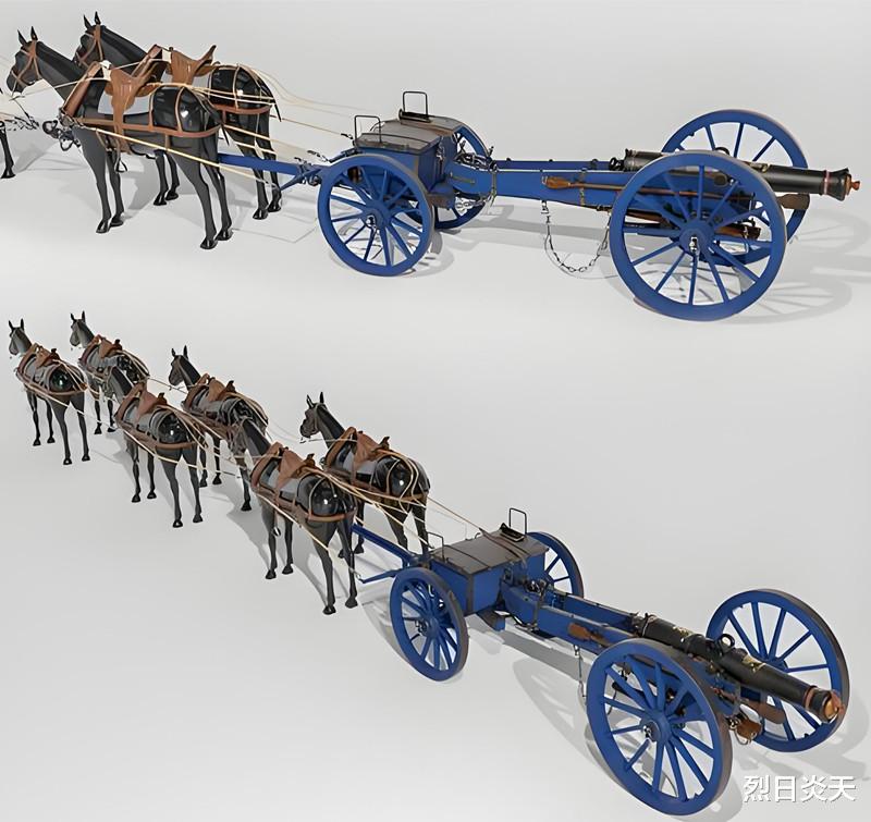 十七世纪初,荷兰铸造最大的巨炮达到5500公斤重,运送这个大家伙就需要30匹马。到了十几世纪火炮技术发展,火炮威力增大但重量减少,法国200公斤重的火炮需要2匹马牵引,1700公斤重的火炮就需要16匹马拖曳。1861至1865年美国南北战争中,北方军一个装备6门十二磅炮的炮兵连,有152名士兵,配备154匹马,这些马匹除了拖曳火炮,还负责牵引12辆弹药车、20辆2轮拖车、1辆铁匠车和1辆辎重车。
