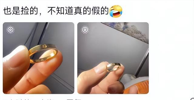 有网友分享了自己捡的金色戒指,但是不知道真假,没有去验过。