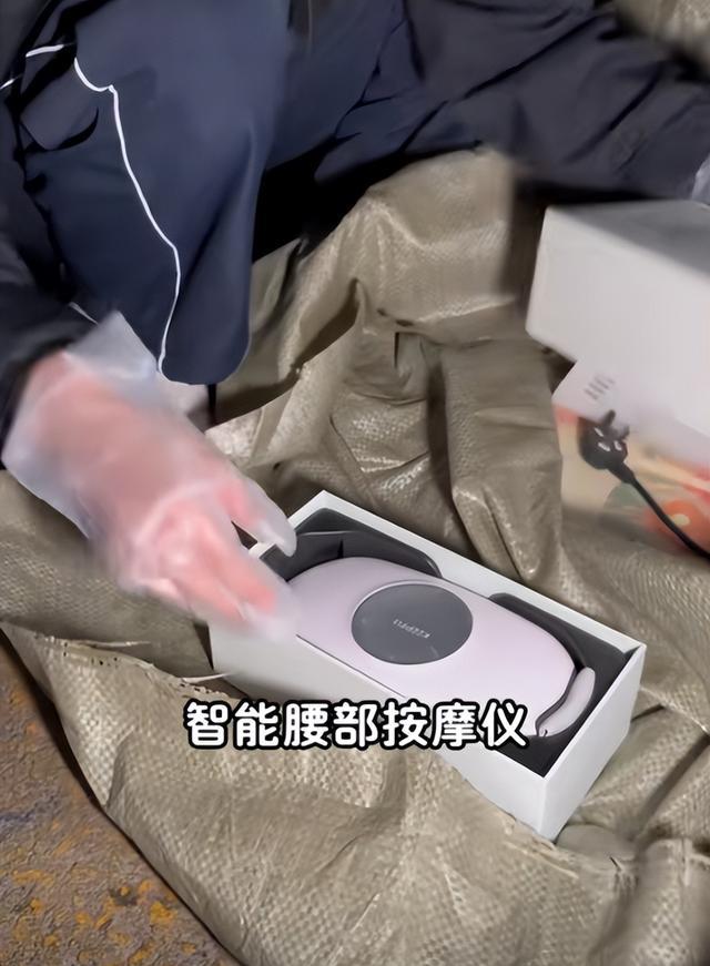在快递的下面就是一个智能腰部按摩仪,打开后仪器都是全新的,充电线什么的都很齐全。