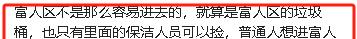 “富人区不是那么容易进去的,就算是富人区的垃圾桶,也只有里面的保洁人员可以捡,普通人想进富人区门都没有。”