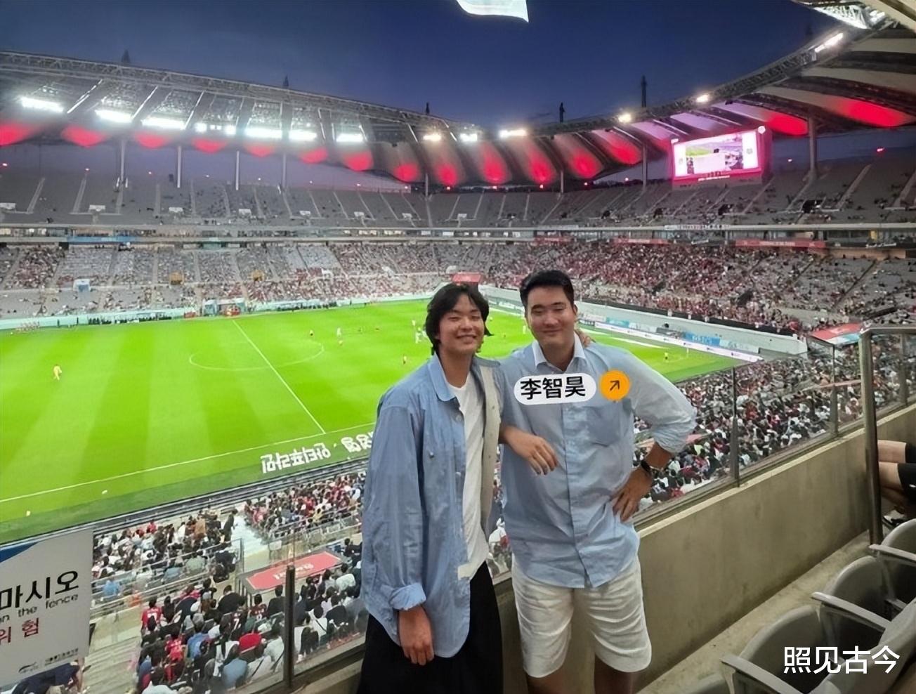 尤其是李智昊穿了黑色的T恤,那魁梧与壮实感就更为突出。这保镖一般的形象,与父亲年轻时那戴着金丝眼镜的温润儒雅截然不同。