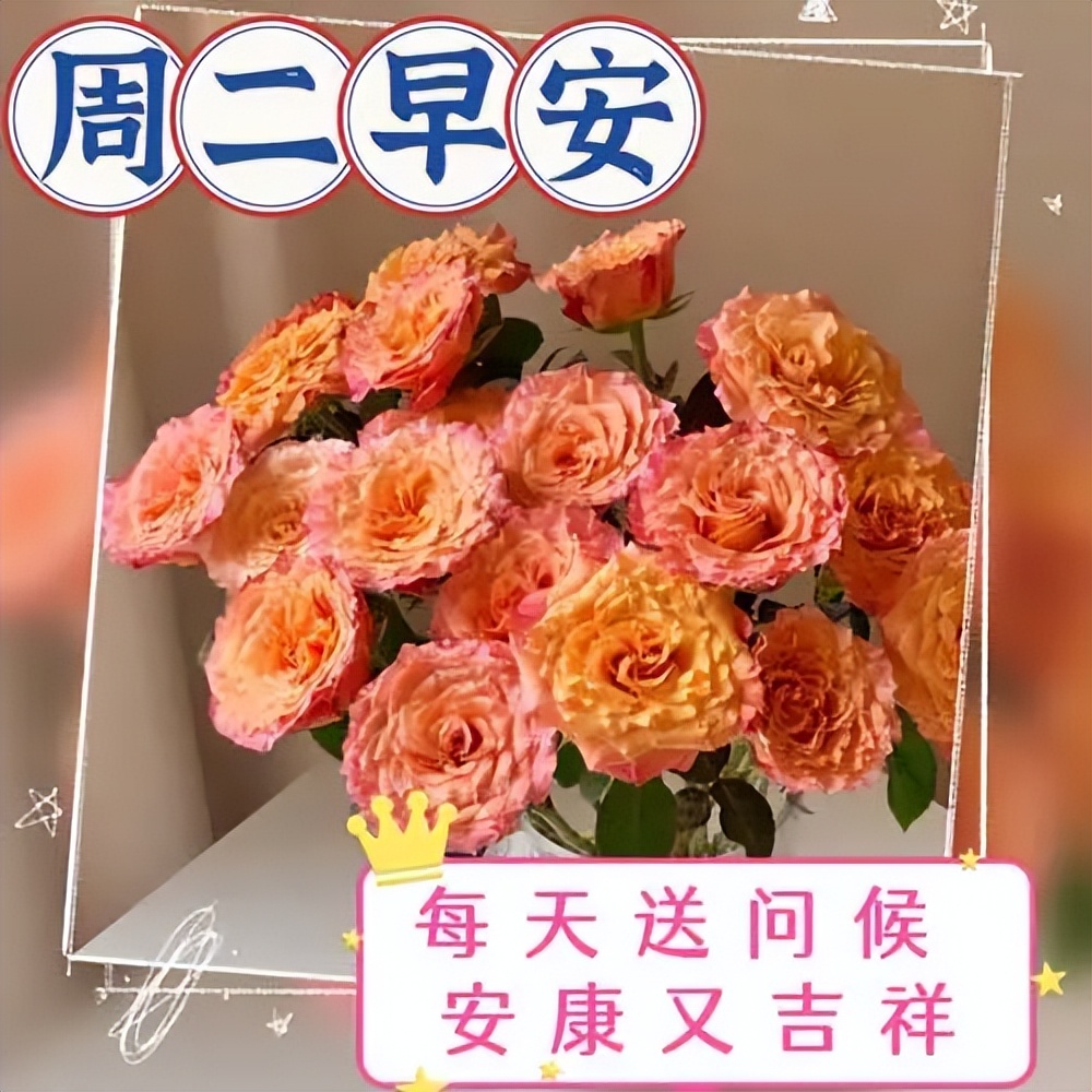 岁月匆匆又一天,清晨祝福到身边,一朝相识一生缘,永生牵挂在心间;千言万语汇一句,顺顺利利每一天!早安吉祥!周二愉快!
