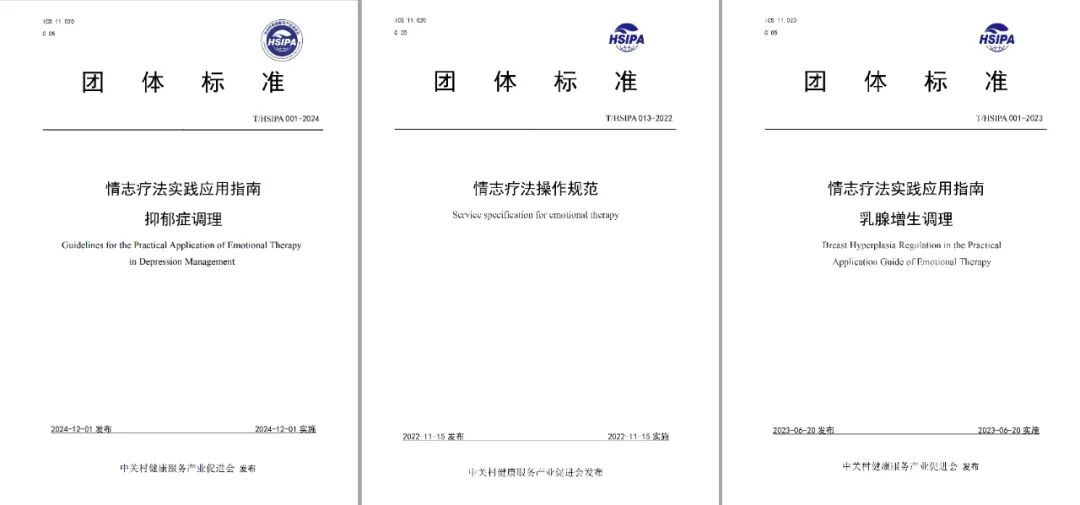 2022年11月,发布“情志疗法操作规范”(项目标号T/HSIPA-002-2022)团体标准;2023年6月,发布“情志疗法实践应用指南——乳腺增生调理”(项目标号T/HSIPA001-2023)团体标准;2024年11月,发布“情志疗法实践应用指南——抑郁症调理”(项目标号T/HSIPA001-2024)团体标准。每一项标准的落地,都为“情志疗法”技术在具体应用与细分领域提供了清晰的操作标尺,推动该技术一步步走向标准化、专业化、可复制的道路,也为更多从业者指明了方向。