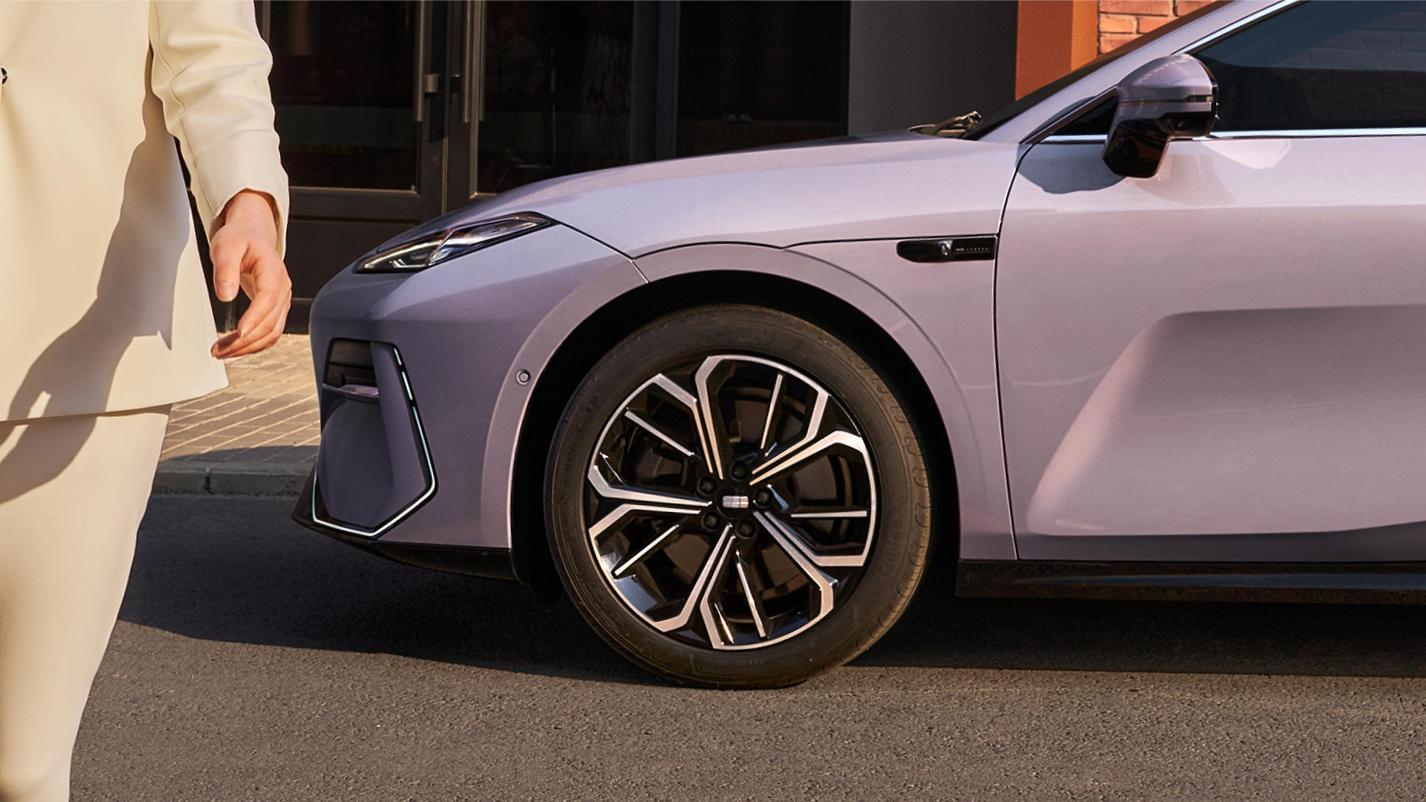 外观设计上,银河E8的轮毂配置堪称“分阶美学”。四驱版专属的20英寸星翼流光运动轮毂,搭配大陆运动卡钳,视觉上更显凌厉,行驶时星翼造型随轮毂转动流转,无论是城市道路通勤还是高速驾驶,都能让车辆在车流中脱颖而出,完美契合追求轿跑质感用户的审美需求。而从探索版起配备的19英寸风暴运动轮毂,与黄金流线车身形成协同,有效降低风阻,日常通勤时不仅提升续航表现,更让车辆在高速行驶时稳定性更优,出街即是焦点。