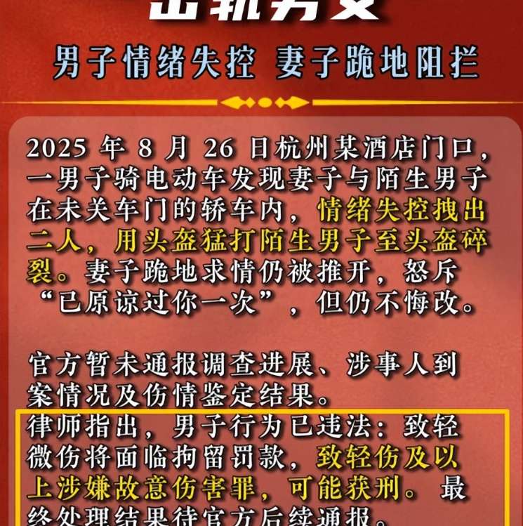 事件一:男子发现妻子出轨男小三,当街暴打对方2025年8月26日,杭州某街头发生了一起震惊人心的“捉奸大战”。当天,一名