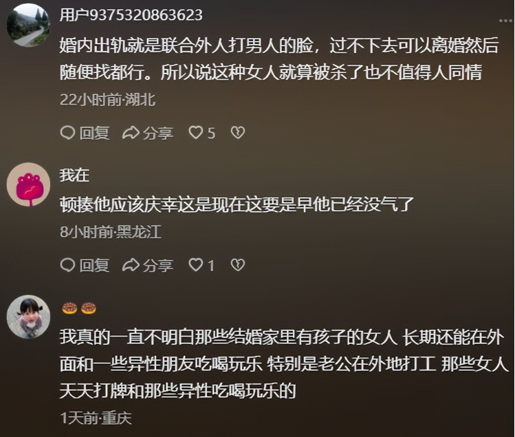 随着现场视频在网络上迅速传播,这起事件引发了网友们的广泛关注和热议。网友们纷纷对妻子和男小三的出轨行为表示谴责,认为他们的行为不仅违背了道德准则,也破坏了家庭的和谐。许多网友表示,出轨是一种不可原谅的行为,它不仅伤害了配偶的感情,也对家庭和社会造成了不良影响。然而,也有部分网友对男子的暴力行为表示质疑,认为他虽然有理由愤怒,但不应该采取如此极端的方式解决问题。他们指出,男子的行为已经涉嫌违法,可能会面临法律的制裁。