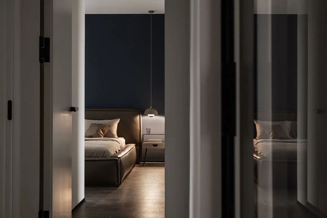 理想的休憩之所有千种表达,蓝色主导安静,无需过多装饰就能让人心神安宁,享受这独有的安静。静谧的深色背景可以让人安心地休息。