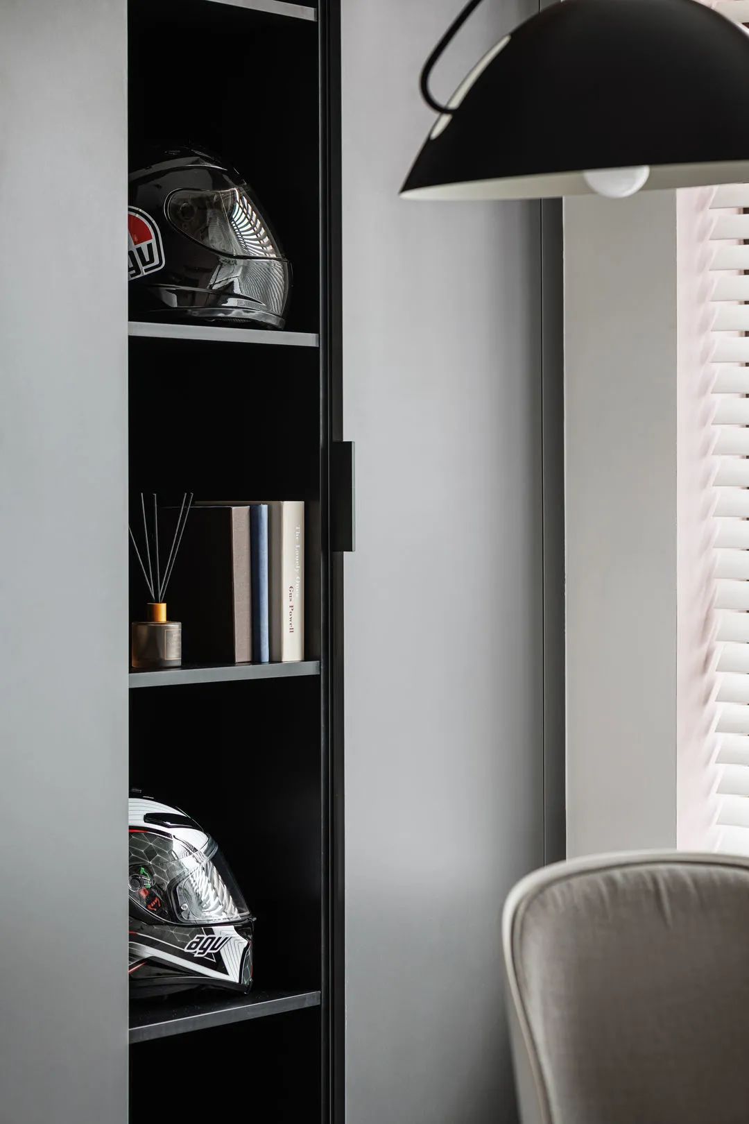 屋主对书柜要求要储物性强,设计以封闭柜门为主,小部分开放式柜体,放置个性化物件增加了空间情绪。