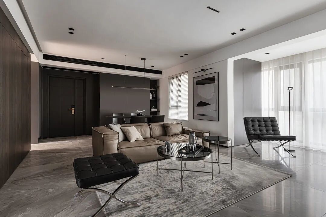 客厅无主灯的设计,增加了整个空间的亮度,彻底解决采光不佳的忧虑;符合极简要求,客厅更显大气利落。