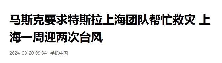 “上海刚刚经历了75年来最强台风!向坚韧不拔、机智勇敢的上海人民送上最诚挚的祝福。我已要求特斯拉上海团队尽最大努力帮助任何有困难的人。”