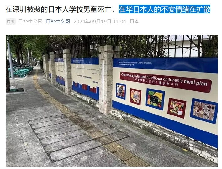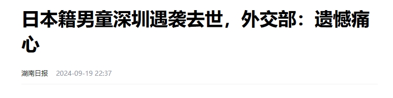 据日经中文网报道, 9月18日,在广东省深圳市,一名就读于日本人学校的10岁小学男童遭到一名男子的袭击并受伤。男童被送往深圳市内的医院接受手术等治疗,但最终死亡。