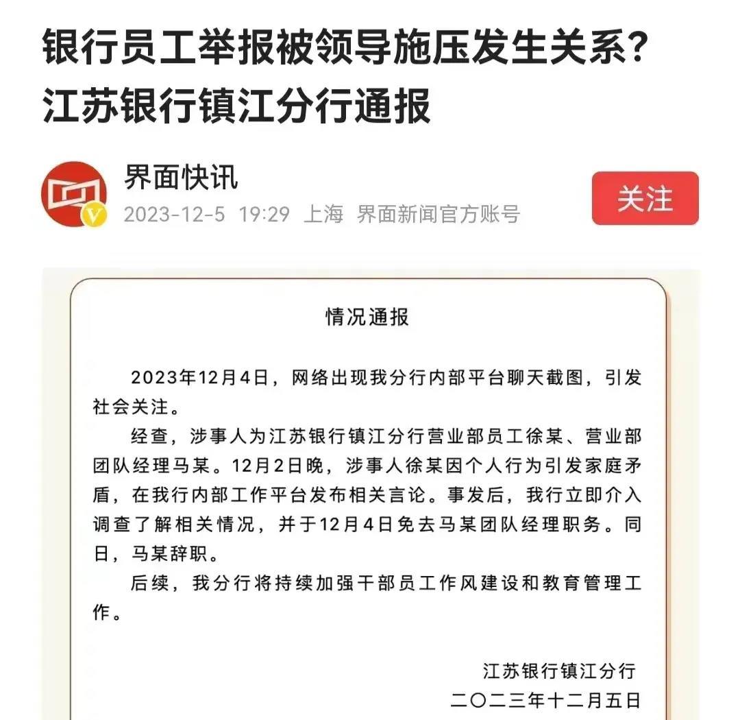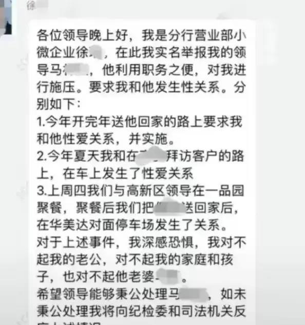 到底是强迫发生关系还是出轨暴露之后的推卸责任?江苏银行镇江分行员工徐女士和上司马经理这档子事儿还有点扑朔迷离了哩!