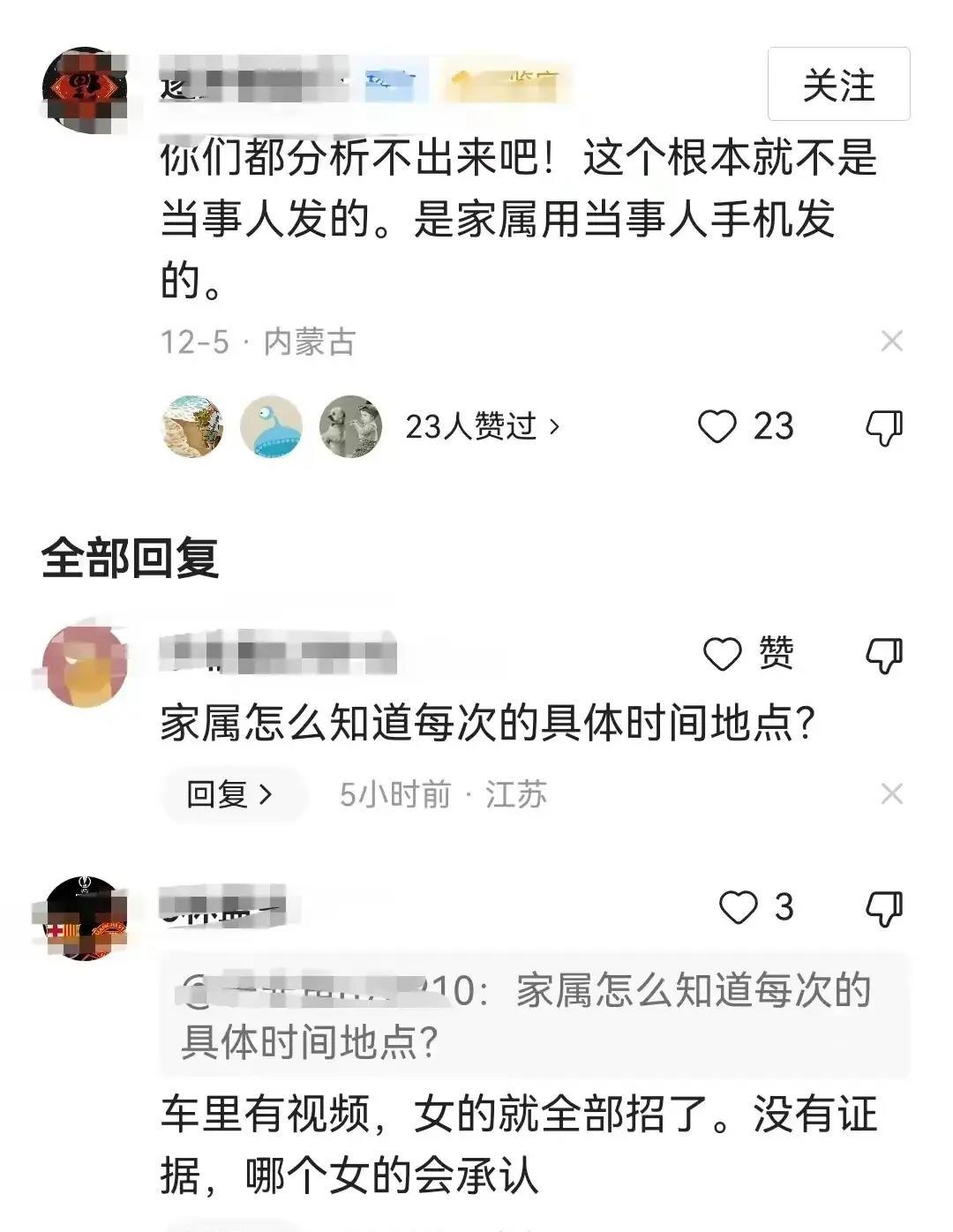 排除了强迫发生关系,那就是徐女士出轨马经理了,据说徐女士的车上有三段视频被老公发现了,说明她出轨属实,而且是在徐女士自己的车上。居然有网友追问,有视频的三次承认了,还有无视频的呢?