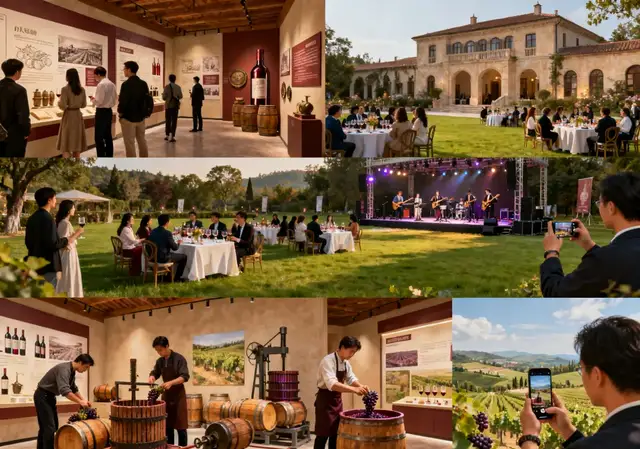 ✨ ① 丹凤酒庄:百年匠心工艺酿造体验活动沉浸式走进百年酒庄,了解红酒酿造历史;亲手体验传统酿酒工艺,感受匠心传承;聆听草坪音乐会伴宴,提升体验氛围;同步发起短视频挑战,感受匠心传承与现代魅力!