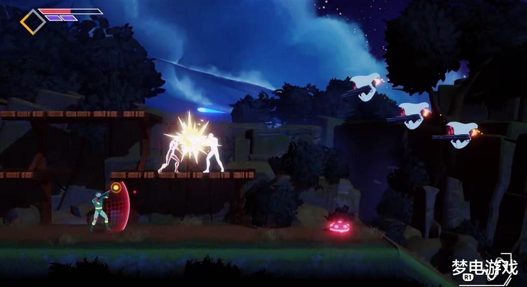 清关时还有两种不能直接射击的特殊敌人,分别需要“蓄力攻击”破的红盾与近战攻击肉搏的蓝盾,在“蓄力射击”只能横向射击攻击敌人和一些特殊敌人排布下让人感觉到棘手,敌人所拥有的碰撞箱在一些时候这表明了通过该区域前得处理掉棘手的敌人,一些存档点间隔三四波这样子的敌人让游戏节奏变得不那么流畅。
