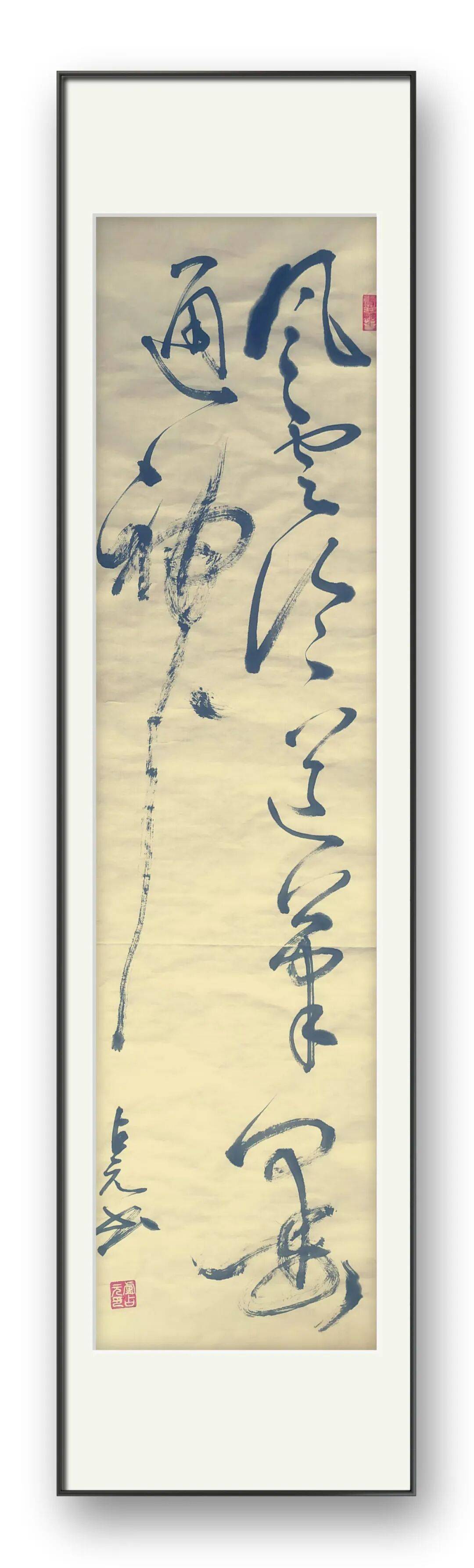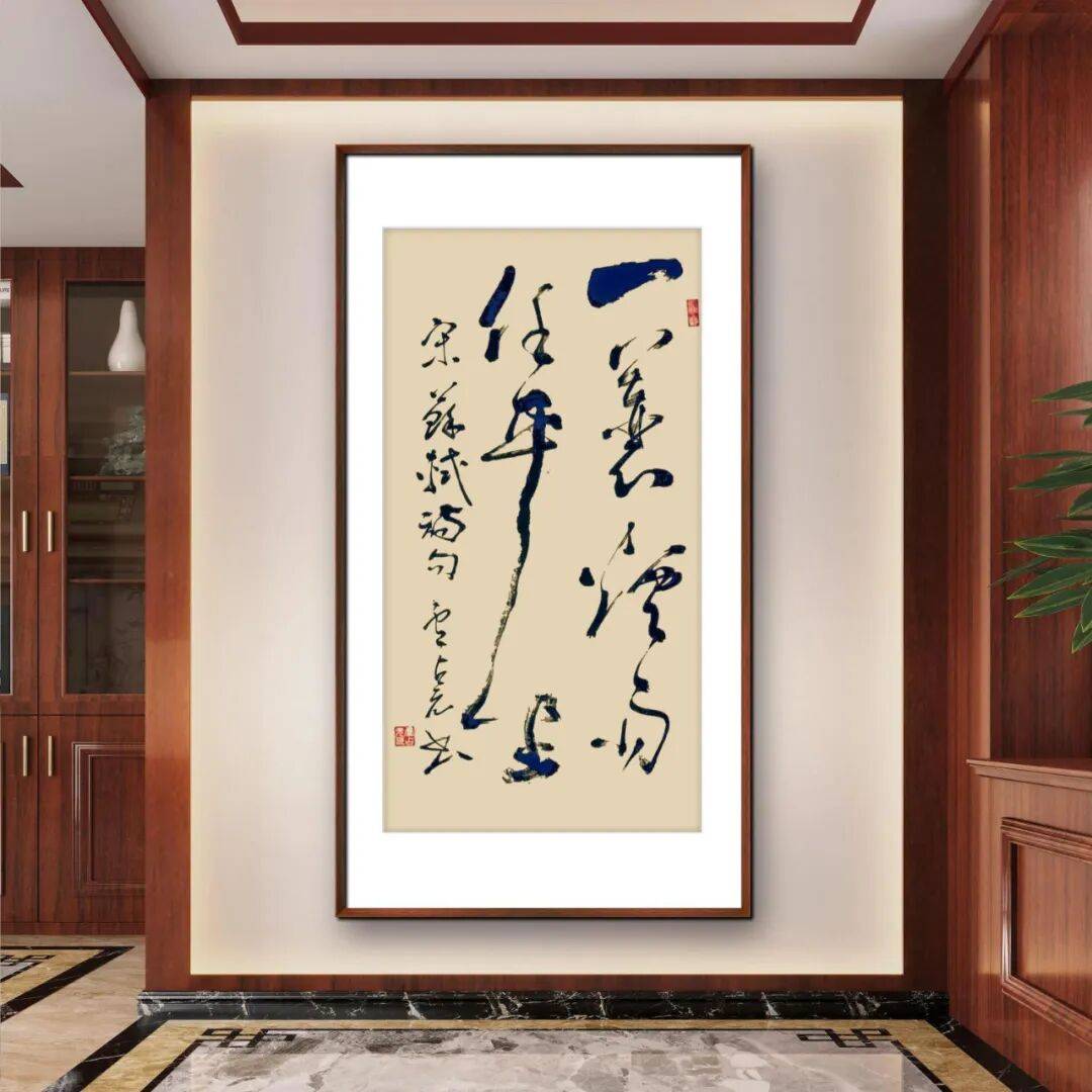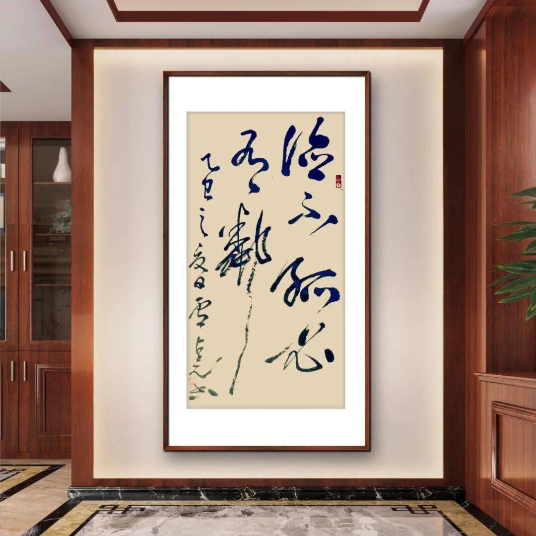 从字体风貌来看,卢占元先生尤擅草书,其笔下的草书,如奔雷坠石,似惊蛇入草,尽显狂放不羁又不失规矩法度的艺术特质。观其作品,线条的粗细、长短、曲直变化万千,却又能在跌宕起伏中保持着内在的节奏与韵律。每一根线条都仿佛被赋予了生命,或刚劲如铁,力透纸背,展现出雄健的笔力;或柔韧如丝,婉转灵动,流露出优雅的韵致。笔画与笔画之间,字与字之间,通过牵丝映带、揖让顾盼,营造出一种连绵不绝、气韵贯通的艺术效果,将草书“流而畅,狂而谨”的美学追求诠释得淋漓尽致。