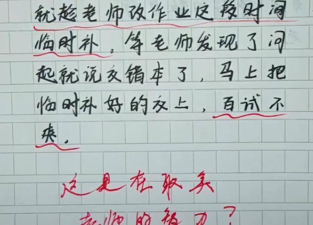 这位小学生丝毫不慌,他表示早上第一节要交的,时间肯定来不及,小学生会先交一个空本子上去,趁老师批改作业的这段时间临时补,打个时间差,等老师发现就说自己交错本了。
