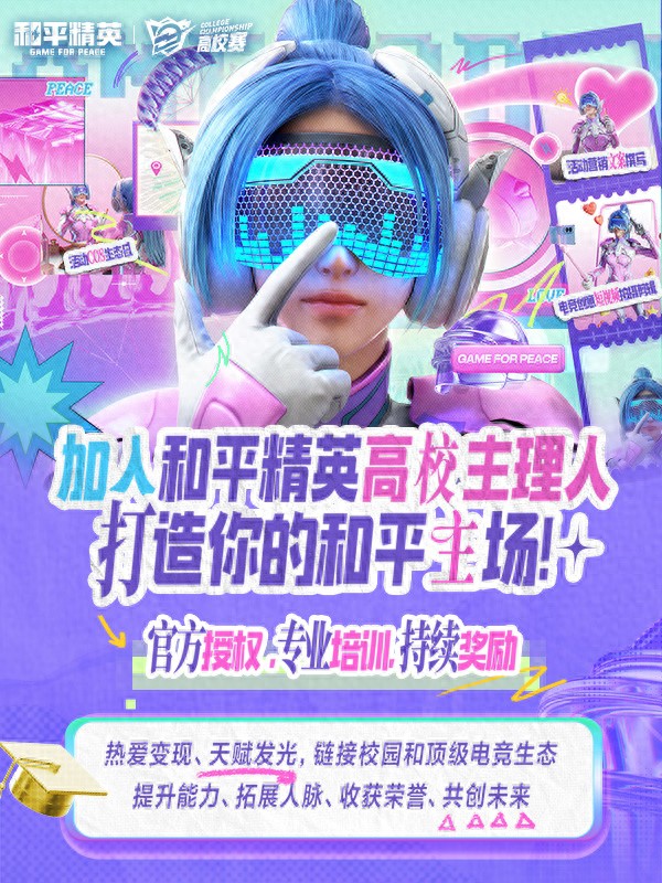 你有才华,我们为你提供舞台!现在起,解锁成为和平精英高校认证玩家,申请成为“和平高校主理人”赢取专属特权,竞放校园光芒,书写属于你自己的电竞故事吧。