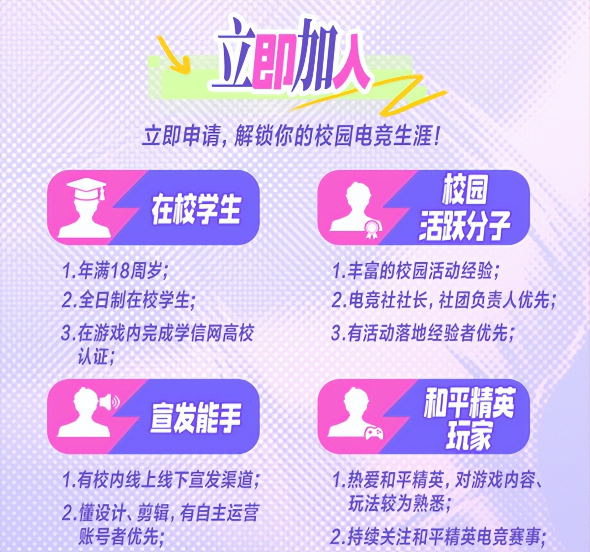 只要你是年满18周岁的全日制高校学生,热爱《和平精英》并富有热情与责任心,现在就可以申请成为“和平高校主理人”!