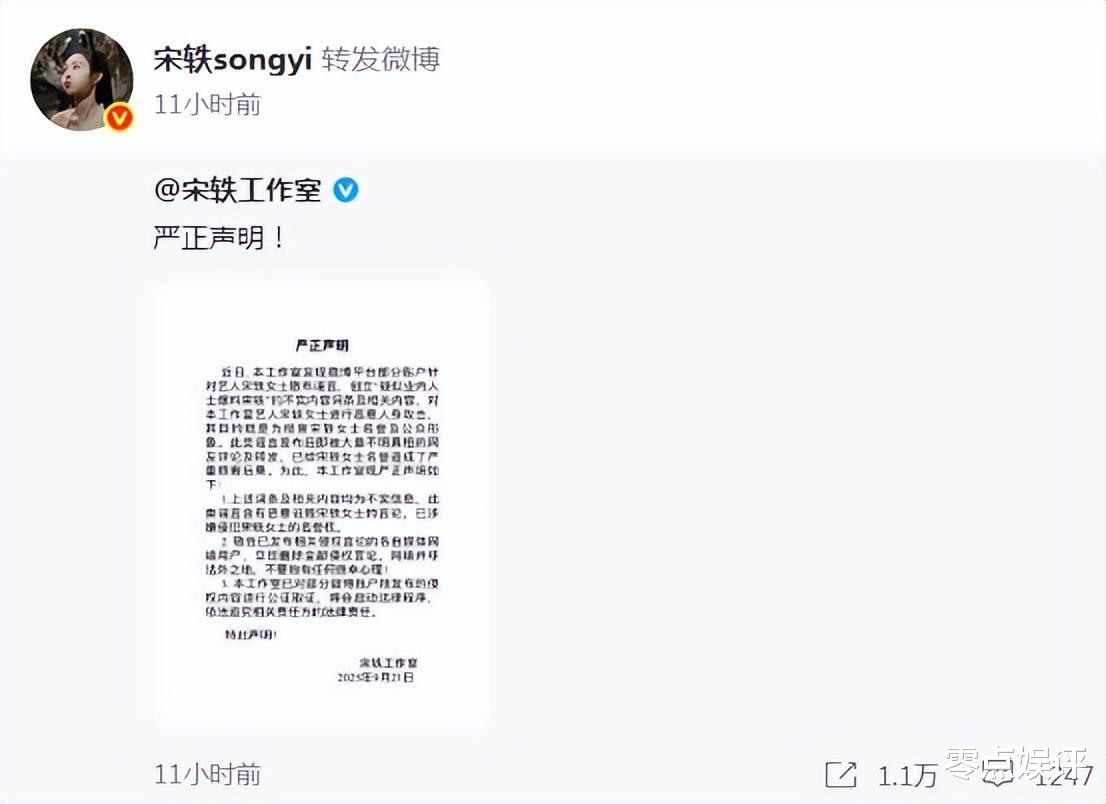嘿,娱乐圈又起风波啦!这次主角是宋轶,宋轶工作室针对 “疑似业内人士爆料宋轶” 一事火速回应。明确指出,所有跟 “# 疑似业内人士爆料宋轶 #” 沾边的词条和内容,全是恶意炮制的不实信息。这谣言都欺负到宋轶头上,侵犯她名誉权了,工作室直接火力全开,启动法律程序,又是严谨的公证取证,又是准备狠狠追究法律责任,宋轶本人也转发声明,那态度,坚决得很呐!