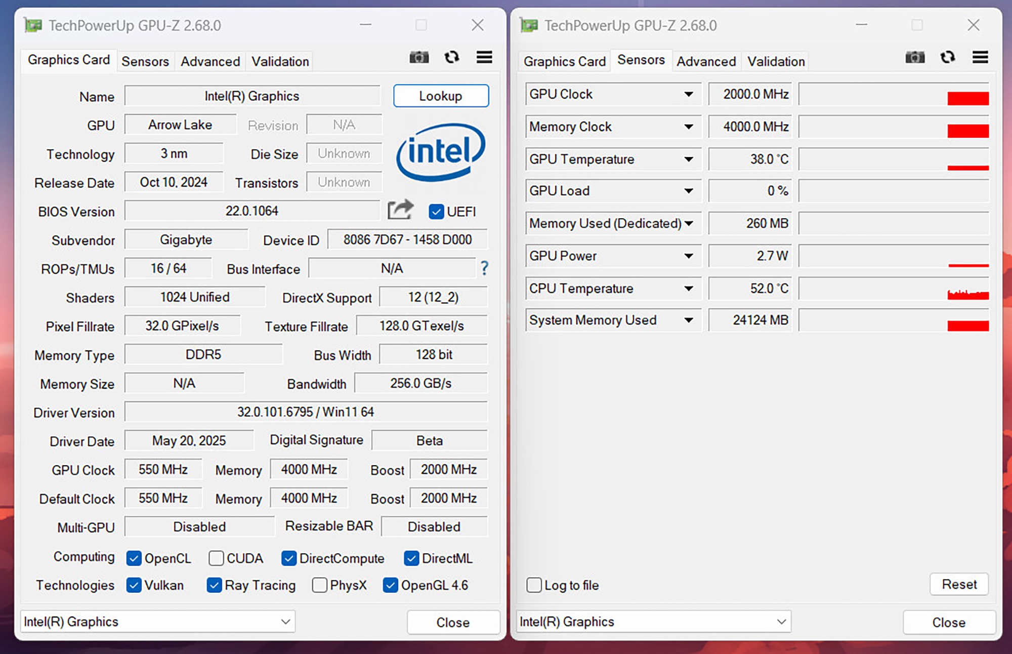 Intel Ultra7 265K处理器内置全新Xe-LPG架构核显,基础频率为300 MHz,最大动态频率为2GHz,最高支持8K60Hz画面输出,理论性能是i7-14700K处理器内置核显的两倍,能够流畅运行一些小型游戏,中大型游戏还得依靠独立显卡,核显更多用于视频编解码等场景。