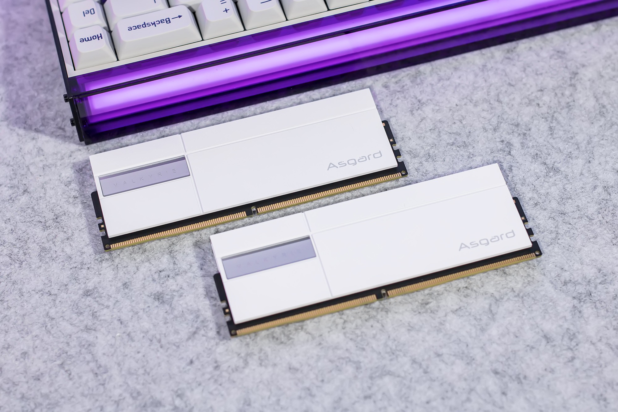 本次搭配使用的是阿斯加特女武神二代DDR5 48GB内存条,内存条配备2mm加厚金属散热马甲,表面经过白色立体烤漆工艺处理,搭配高导热性能的硅脂,能有效降低高频运行温度,内存条搭载海力士M-die颗粒,支持Intel XMP3.0和AMD EXPO一键超频,其中两套XMP参数分别为6400MT/s CL32与6800MT/s CL32。