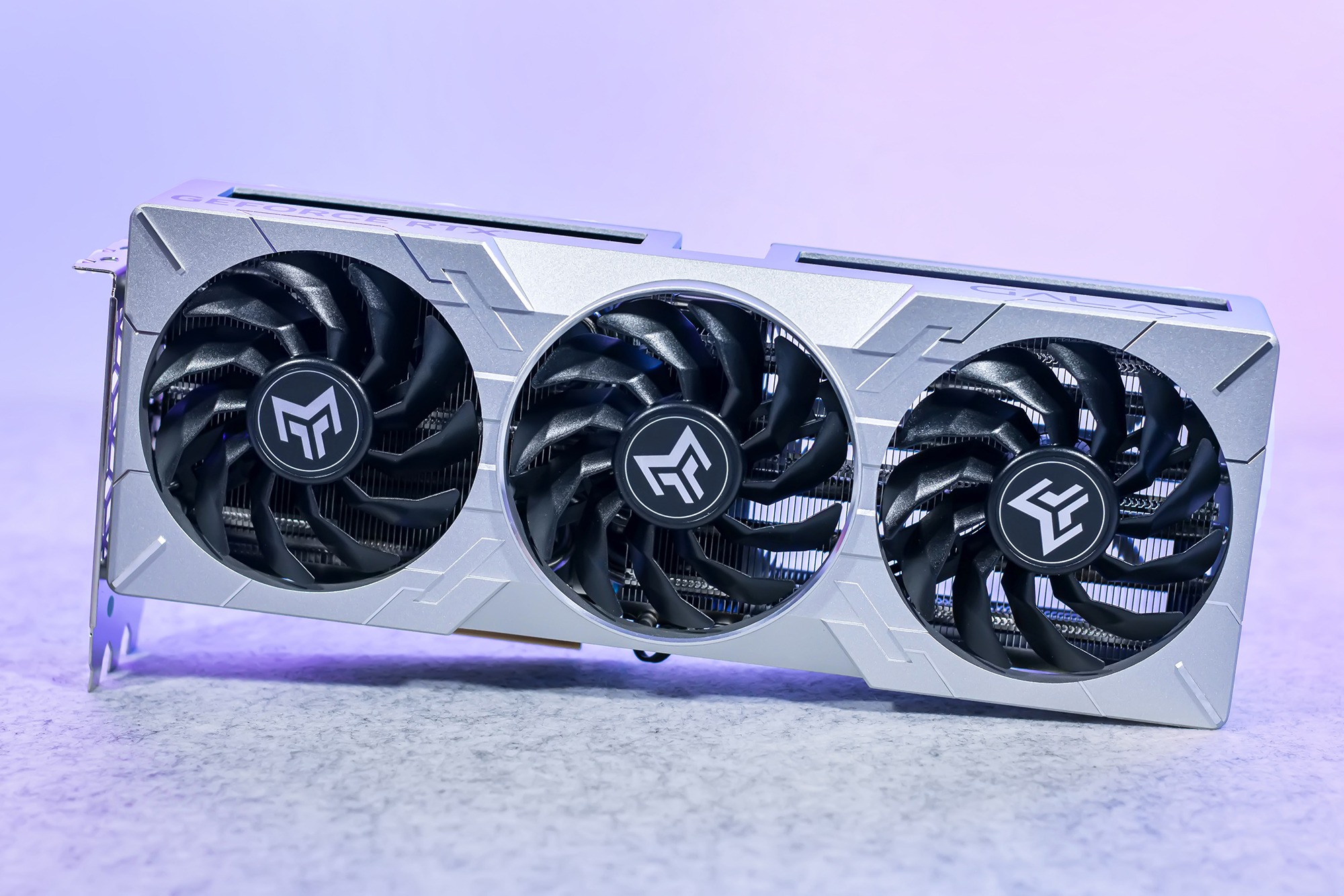 显卡为影驰RTX4070Ti Super 16GB金属大师,外观造型设计方正规整,上盖与背板均为铝合金材质,全金属覆盖赋予了显卡独特的金属质感,配备八根6mm镀镍复合热管与三散热风扇的设计,散热系统用料非常扎实,其散热性能能轻松应对显卡近300W满载功率释放。