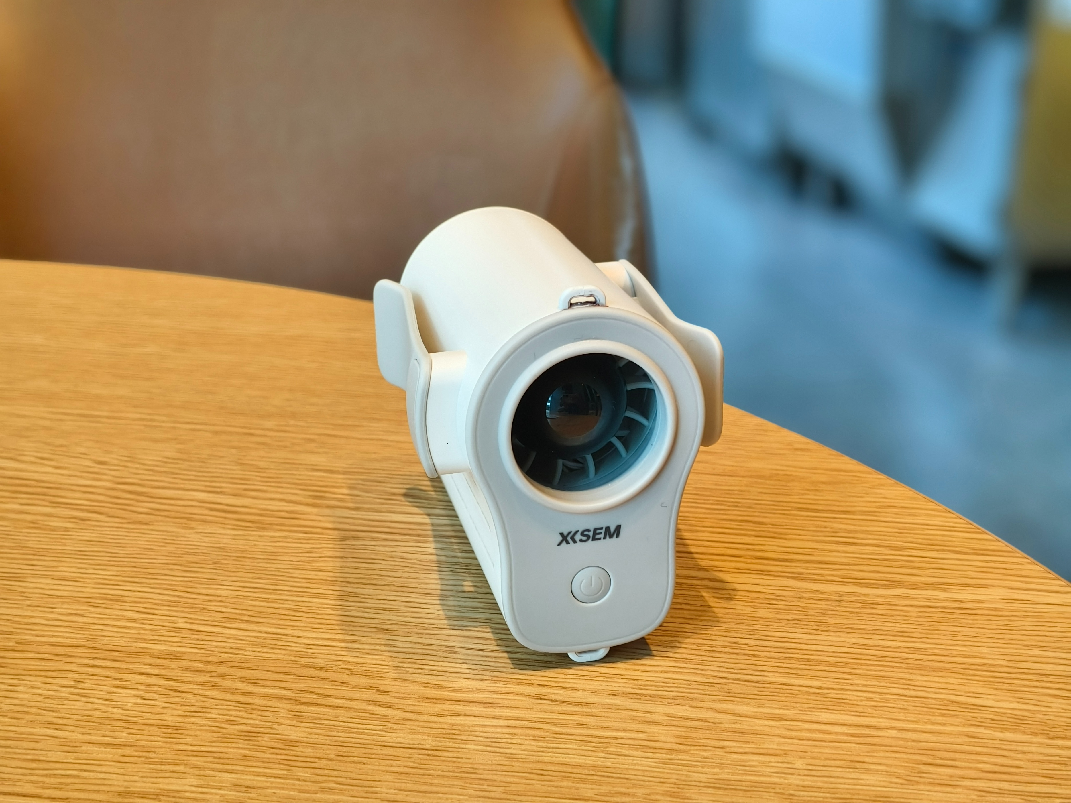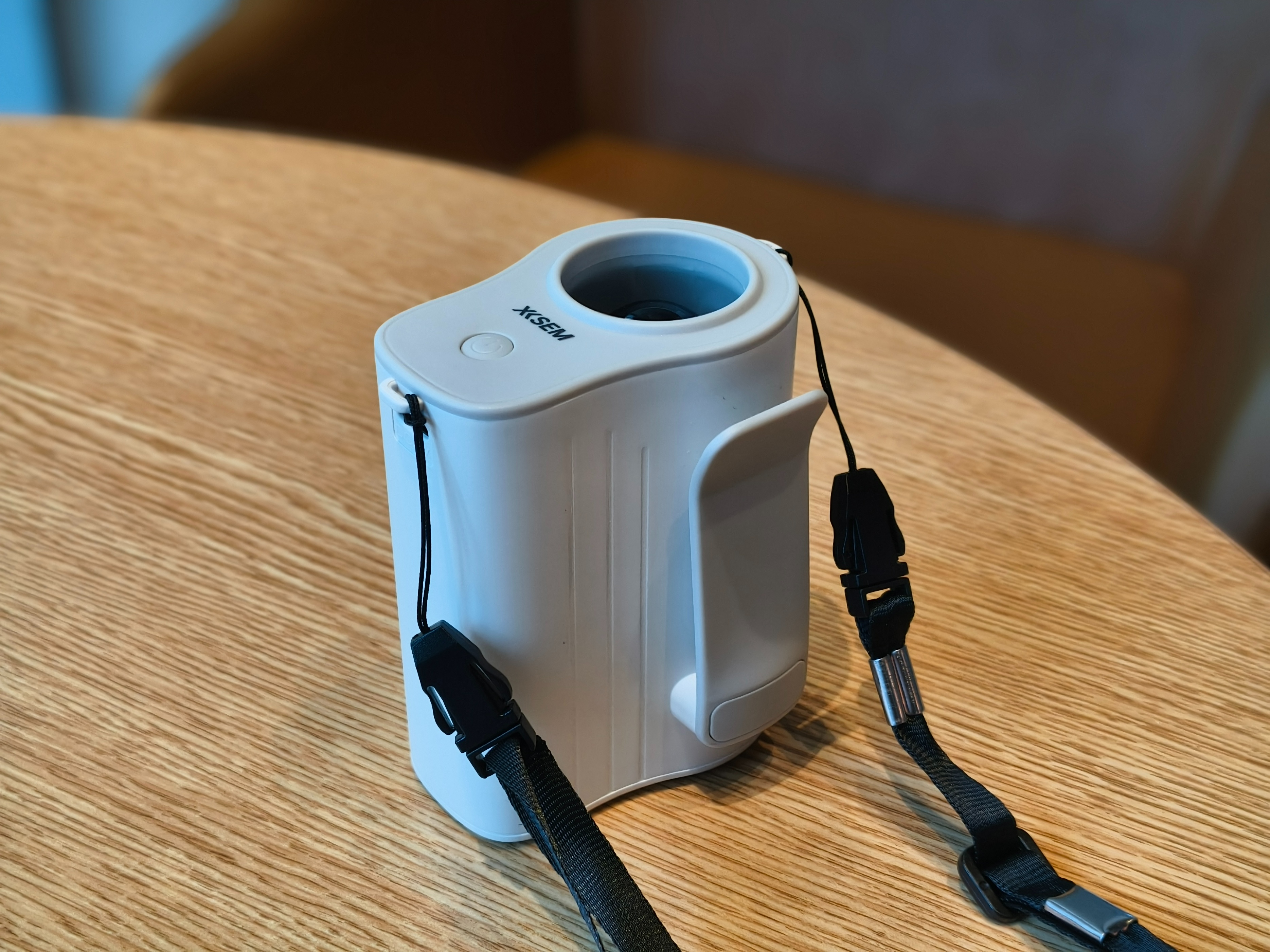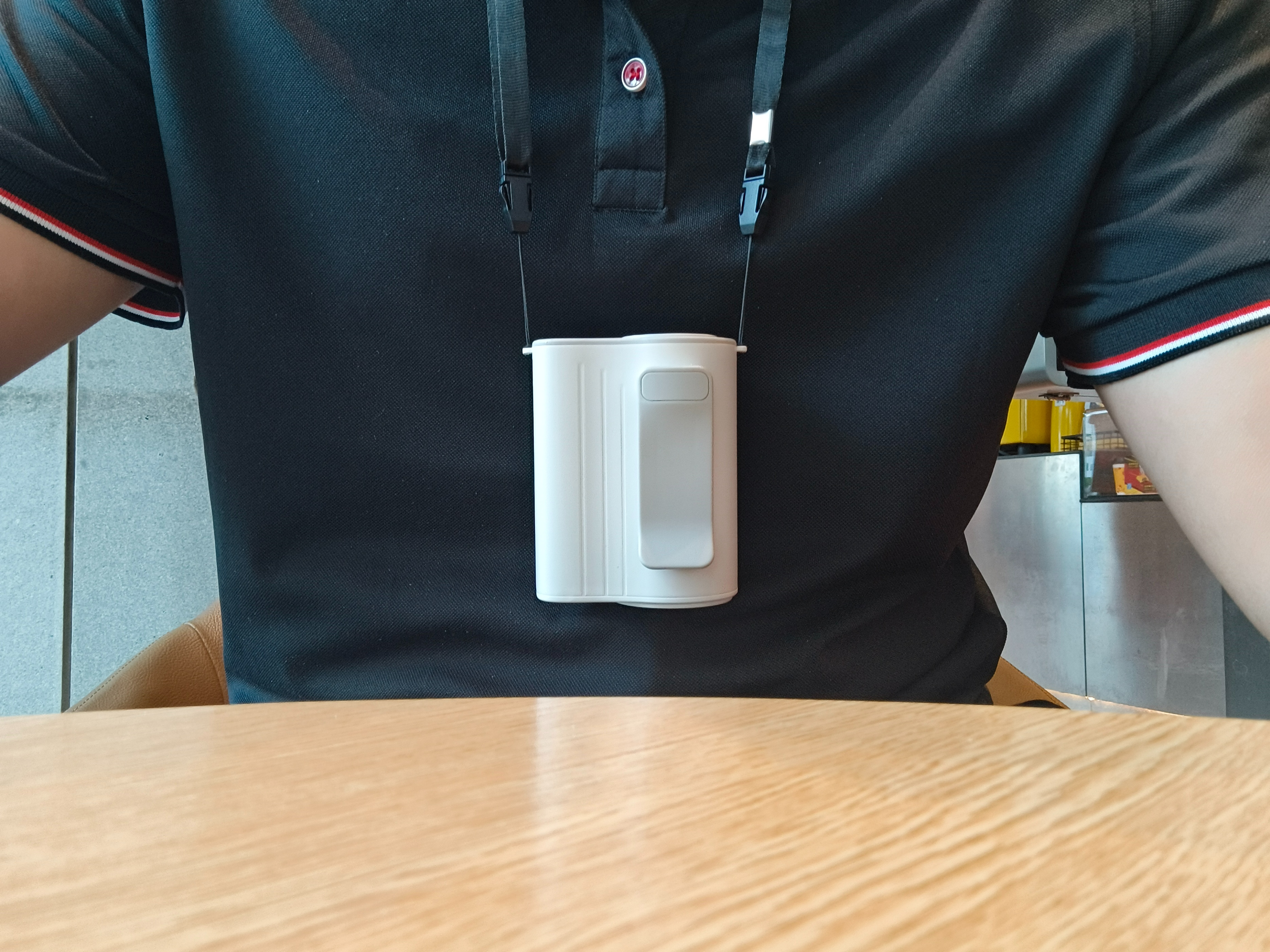 我第一眼看到这个小风扇的时候,给我的第一印象是录像机,它的外形非常像,设计点很新颖。机身上下有两个可以系绳子的设计,可以挂在脖子上,卡在腰间。机身的重量很轻只有182g,挂在脖子上像个大一点的“金坠子”,哈哈哈。