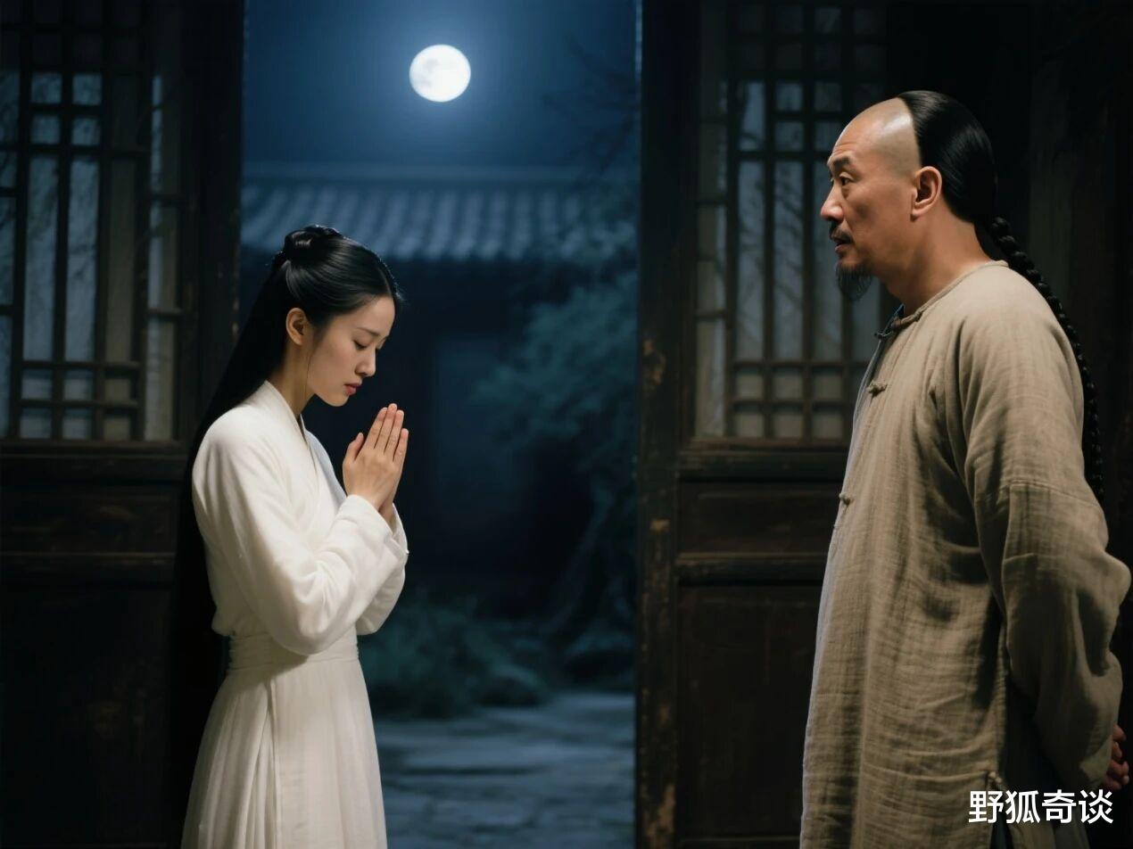 “我就是你所救的那只白狐呀,前几日遭逢大难,多亏先生出手相救,恩同再造。妾身无以为报,愿为先生拂拭枕席,凭君驱使。”