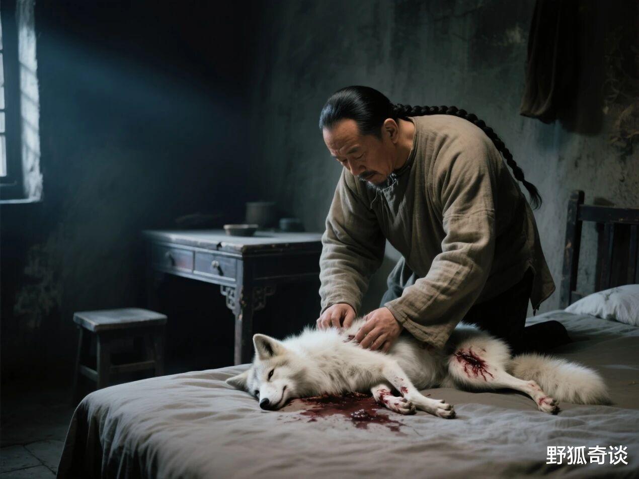 那白狐身上被撕咬得毛血狼藉,令其动了恻隐之心,当即抡起护身的木杖,将恶犬驱散,随即将业已奄奄一息的的白狐提回屋内,精心照料。