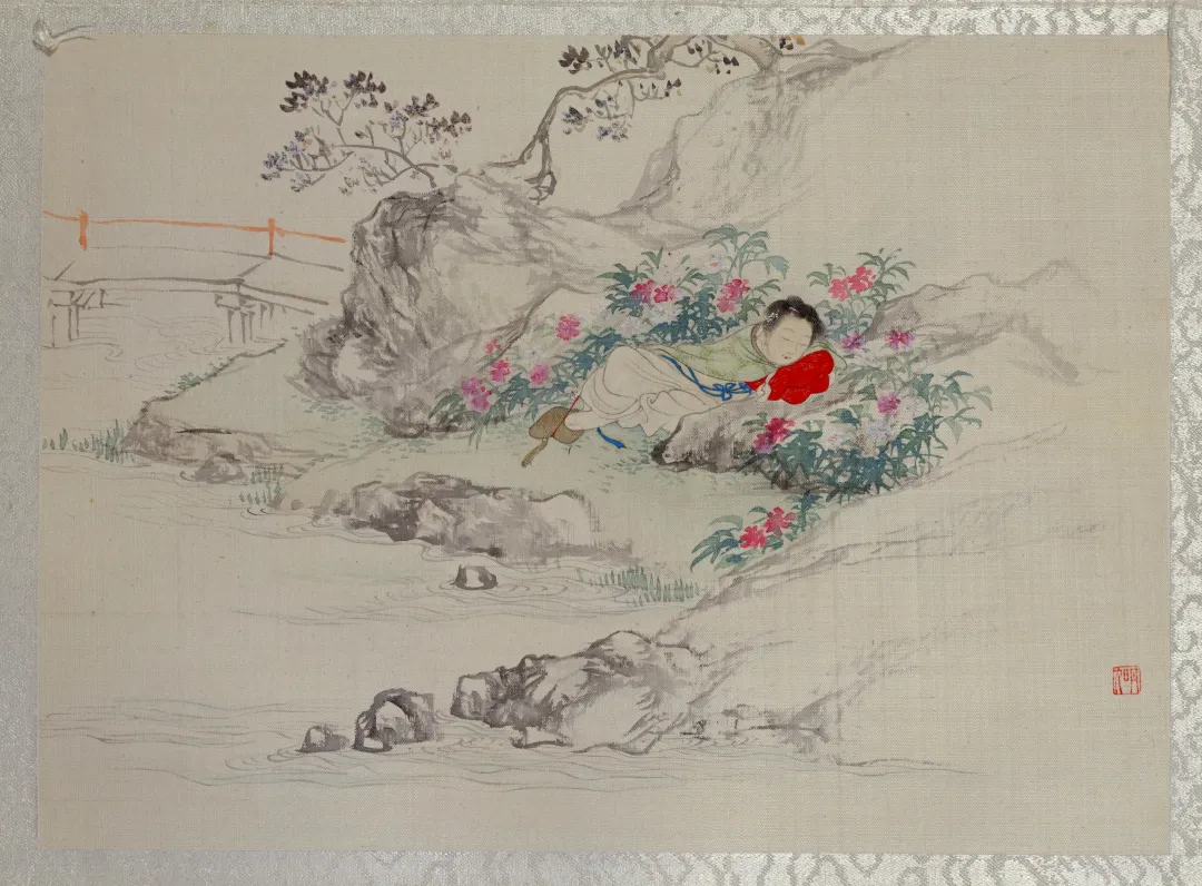 湘云醉卧海棠 绢本 设色 每开 20.3x27.7cm