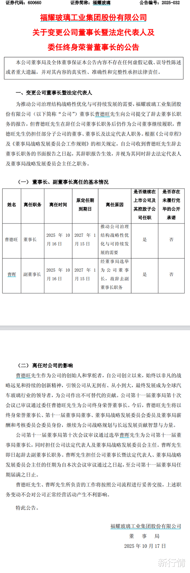 最后,福耀玻璃强调,此次职务变动不会对公司正常经营活动产生不利影响。