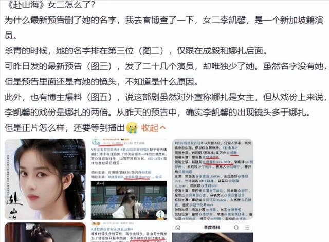 《赴山海》剧组也迅速做出反应,4月9日,《赴山海》官微突然删除了李凯馨相关内容,剧集状态从“即将播出”改为“延后播出”,在新版的宣传内容里,李凯馨的名字从演员名单中彻底消失。