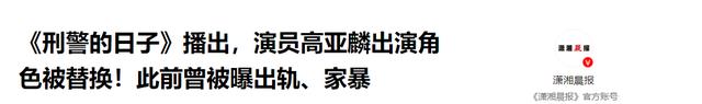《刑警的日子》播出,演员高亚麟出演角色被替换!此前曾被曝出轨、家暴 - 潇湘晨报