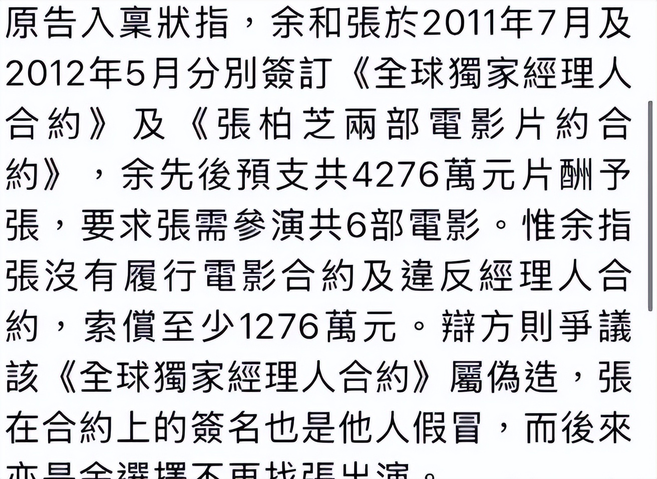 近日,张柏芝与前经纪人余毓兴之间的合约纠纷案件在香港高等法院再次开庭审理,这起自2020年起的法律纠纷已进入第三个年头,双方的争议点再度引发媒体与公众的关注。