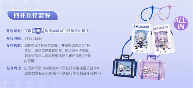 早在去年年底,瑞幸就曾和米哈游系的《原神》进行过合作,以枫丹国为背景,选择希格雯和克洛琳德作为联动角色,推出对应新品“枫丹锡兰轻乳茶”和“枫丹红酒美式”,以及贴纸、钥匙扣、雨伞等一系列周边产品。