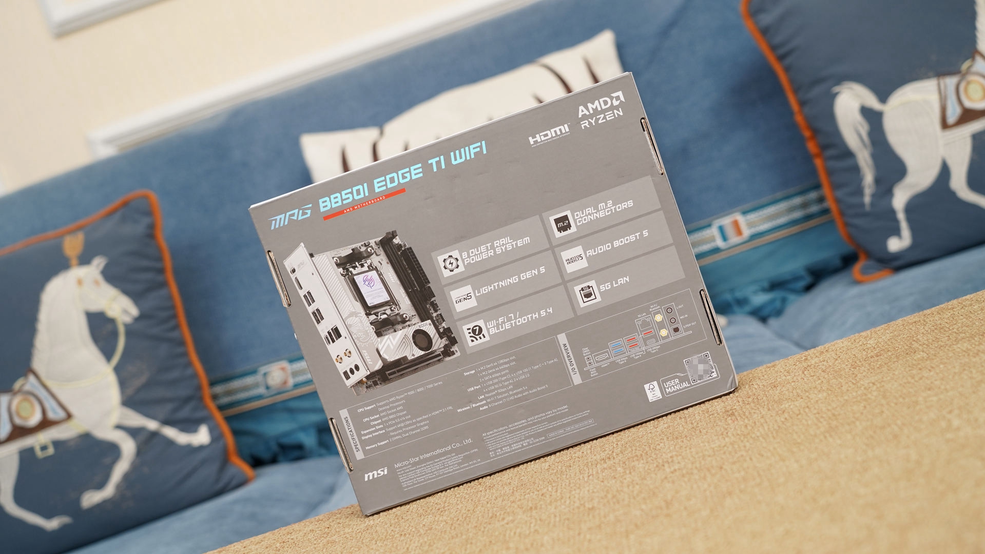 微星 MPG B850I EDGE TI WIFI刀锋钛采用了较为复古的外包装风格,有点当年服务器主板的感觉,这和其服务器级别的做工倒是完全吻合。