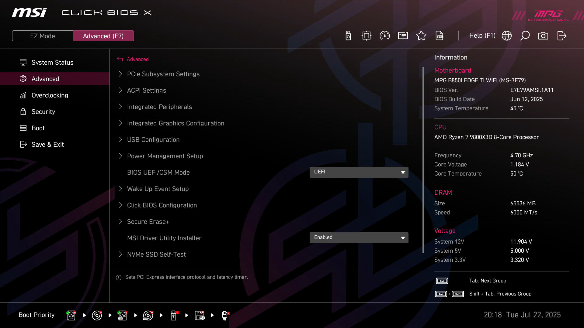 微星 MPG B850I EDGE TI WIFI刀锋钛采用了MPG全新升级的界面风格,整体看上去更简洁、操作也更方便。