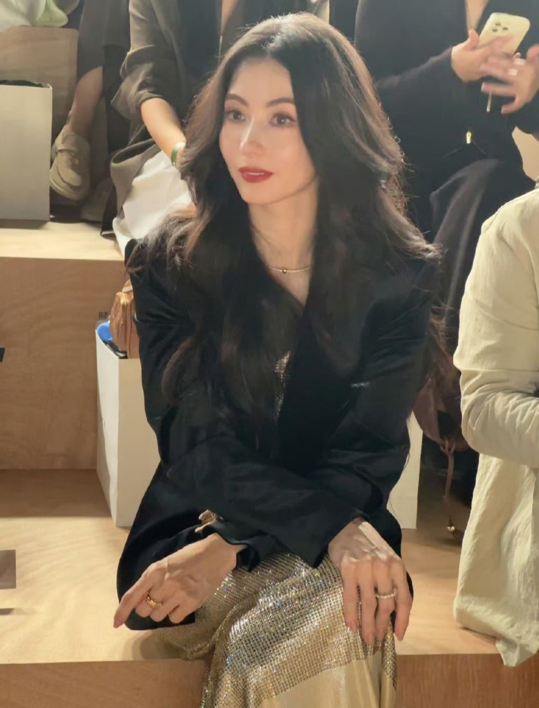 活动前,张柏芝工作室释出一组预热物料。黑色西装剪裁利落,凸显直角肩与纤细腰身,金色半身裙的流光质感与西装形成强烈视觉冲击,搭配简约盘发与珍珠耳饰,既保留了骨相美人的凌厉感,又通过金属元素增添了奢华氛围。网友纷纷留言:“这状态说是30岁都有人信!”“黑金配色简直是她的本命穿搭!”