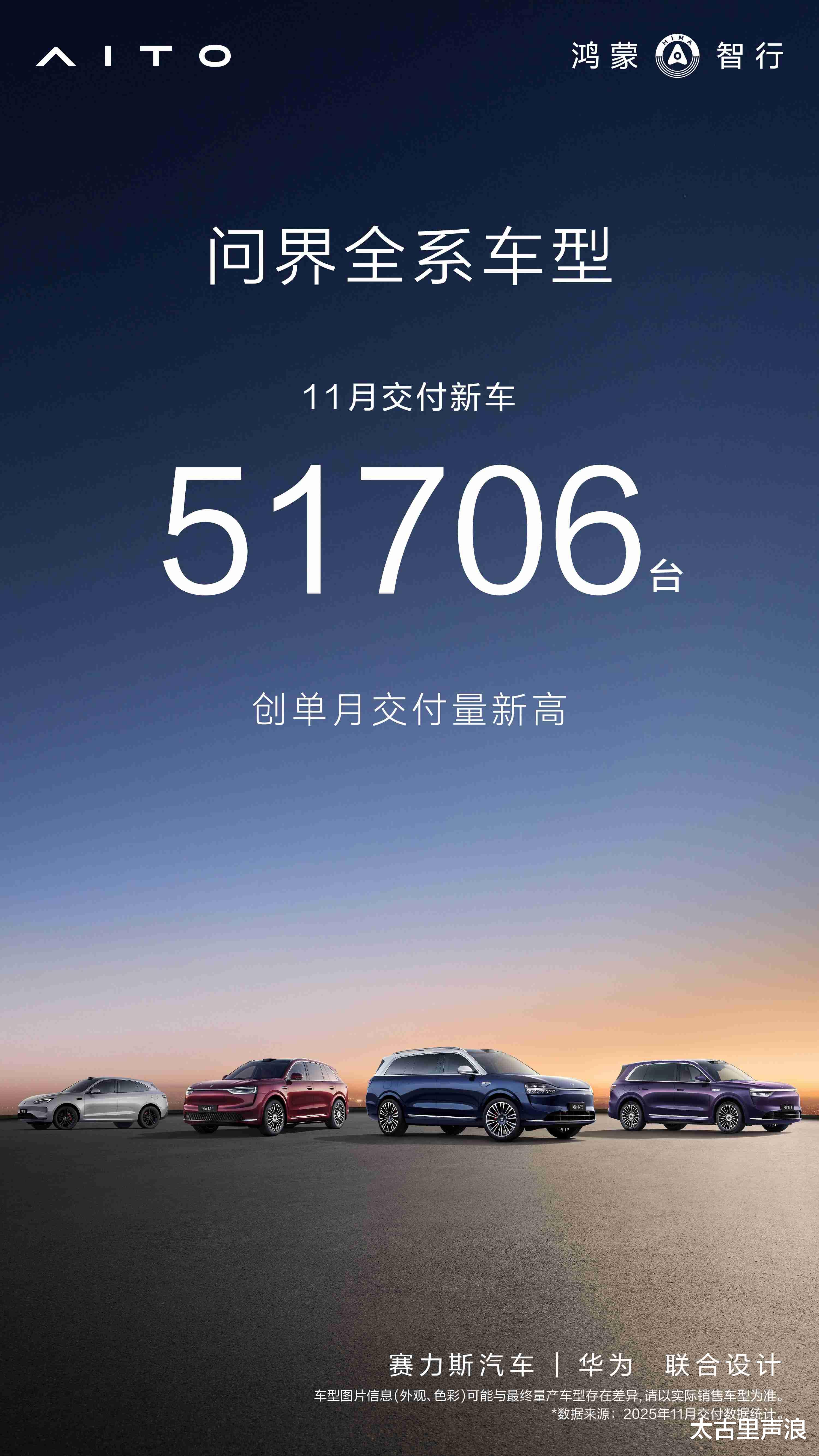问界品牌经过几年发展,已经成为新能源汽车行业,乃至汽车行业的标杆,大量智能化、电动化技术应用推动品牌高速发展。截至目前,问界品牌累计销量超90万辆。仅11月份,由问界M5、问界M7、问界M8和问界M9等系列车型组成的问界家族,累计销量就达到近5.2万辆,继续领跑豪华车市场。