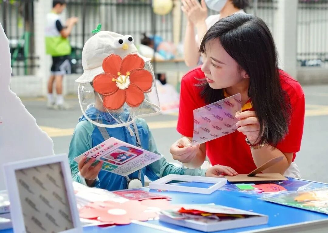 志愿者们也格外投入,有人笑着给孩子递上一沓新贴纸,有人弯下腰耐心地给孩子讲解贴画的小技巧。