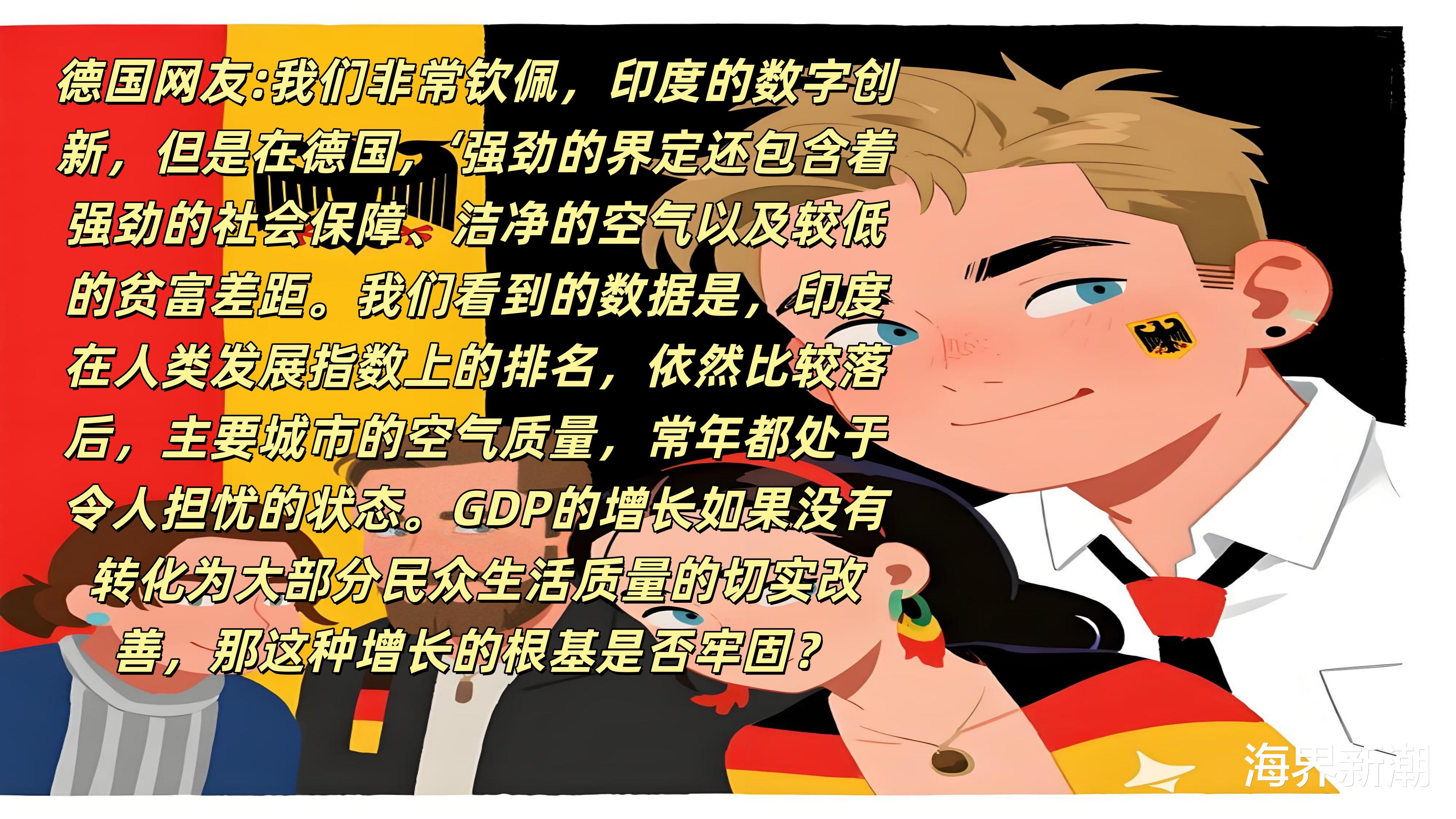 一位德国网友提到:“我们非常钦佩,印度的数字创新,但是在德国,‘强劲的界定还包含着强劲的社会保障、洁净的空气以及较低的贫富差距。我们看到的数据是,印度在人类发展指数上的排名,依然比较落后,主要城市的空气质量,常年都处于令人担忧的状态。GDP的增长如果没有转化为大部分民众生活质量的切实改善,那这种增长的根基是否牢固?”