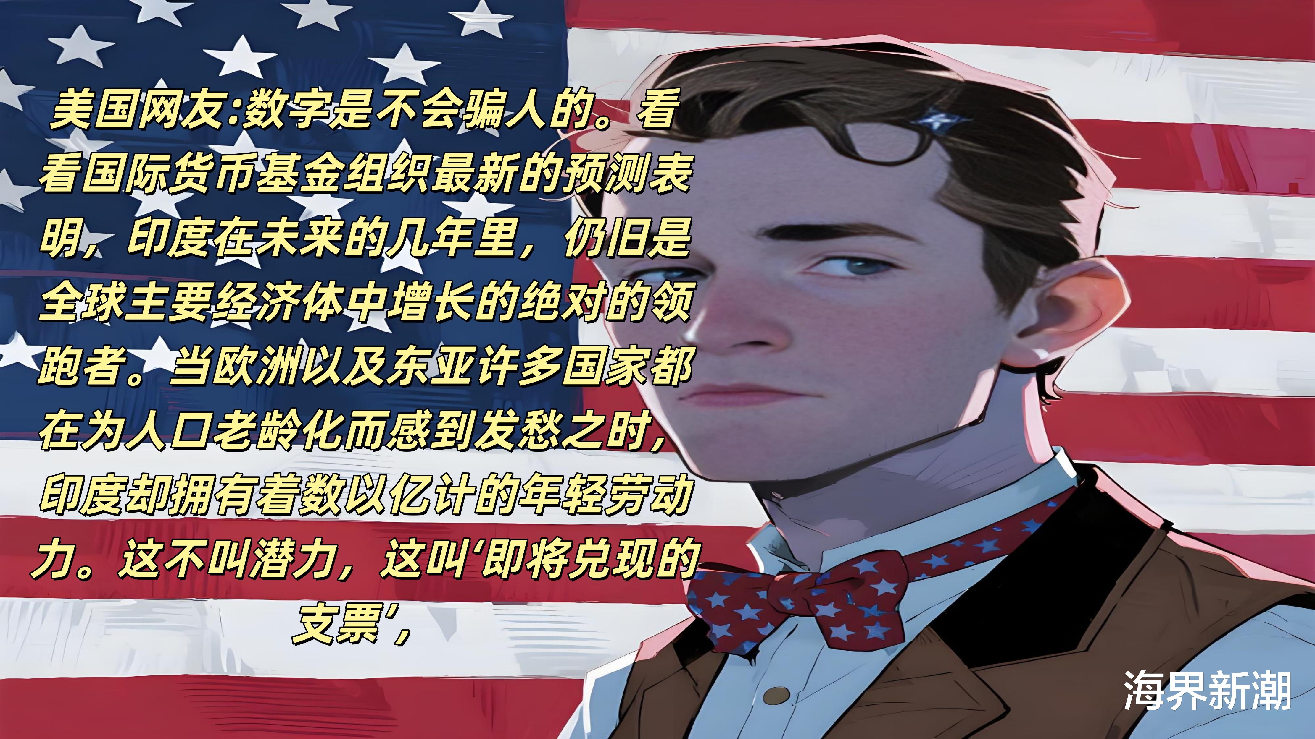 一位自称在美国从事风险投资的网友评论道:“数字是不会骗人的。看看国际货币基金组织最新的预测表明,印度在未来的几年里,仍旧是全球主要经济体中增长的绝对的领跑者。当欧洲以及东亚许多国家都在为人口老龄化而感到发愁之时,印度却拥有着数以亿计的年轻劳动力。这不叫潜力,这叫‘即将兑现的支票’,”